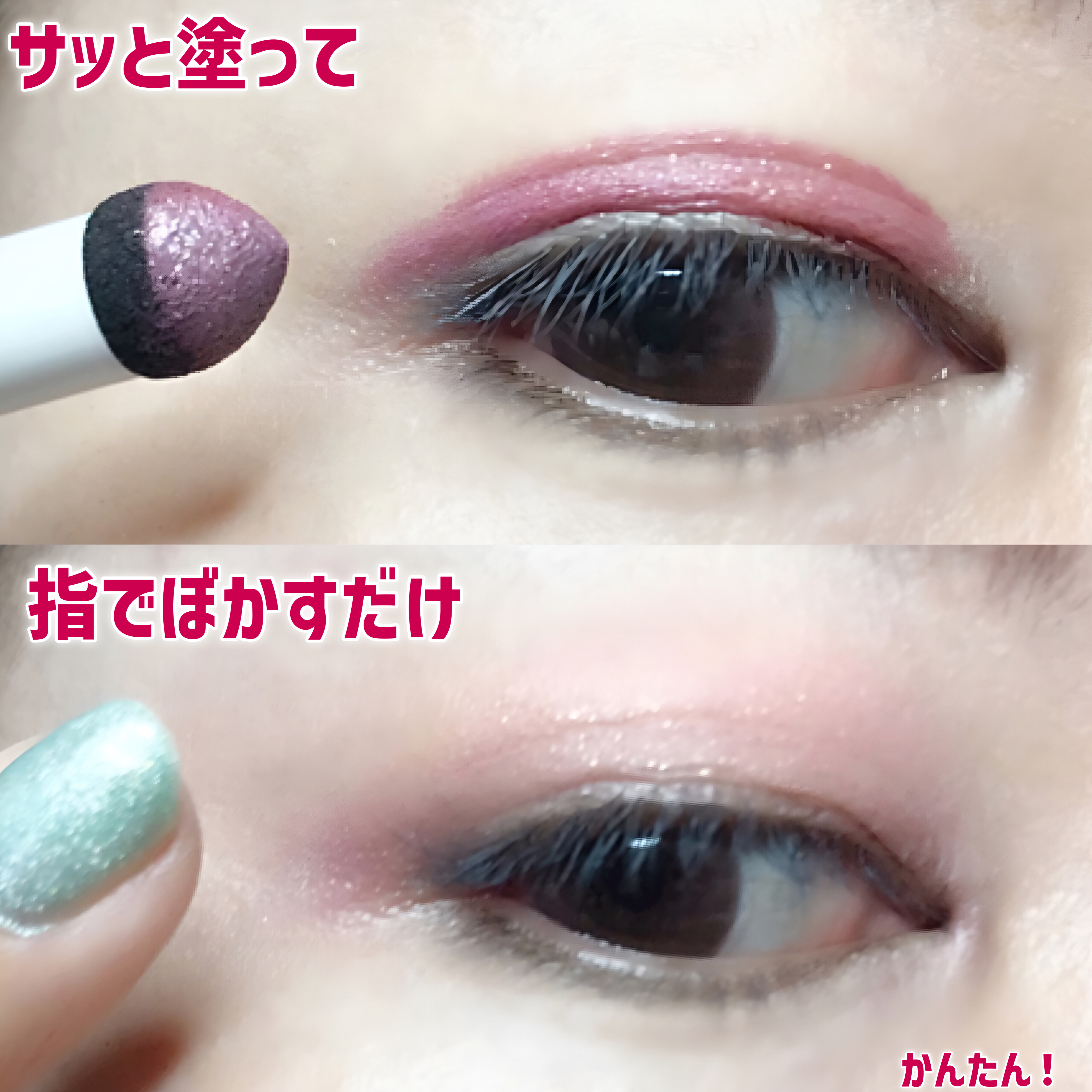クッションチップアイカラーNはグラデーション仕上げに使いくてボカシやすい!! 一本でグラデーション仕上がりできますね!!目尻や細かいとこにはちょっと不向きだけど私は、ブラシに付けて細かいとこはのせました♫ カラーはめちゃくちゃ可愛い💜思った以上に発色もよく、ツルッとスルッと使えます!!