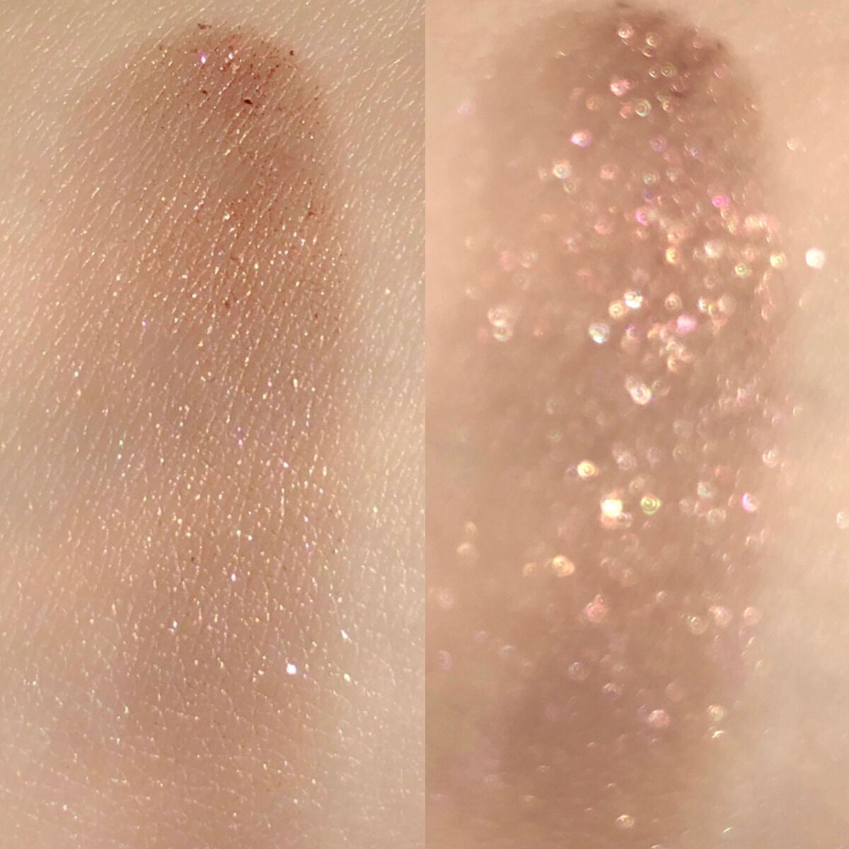 名前から可愛い!! ニュートラルなブラウンにピンクラメ。こんなにラメがキラキラしてるとは…🫣💕 万能締め色になりそうと思って買ったけど、優しい雰囲気のカラーだから淡めに塗ればアイホール全体にもいける🙆🏻♀️