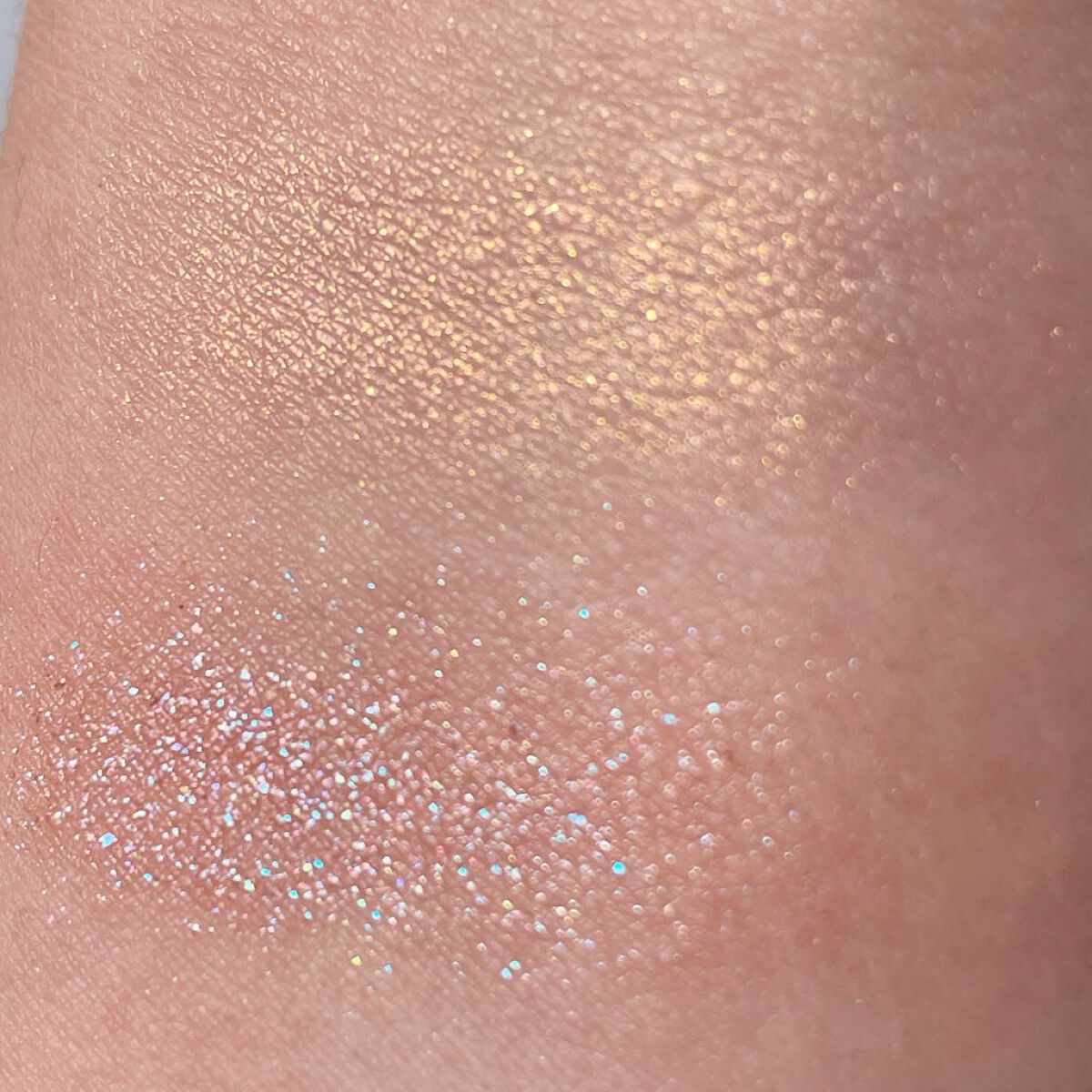 使ってみると粉質は結構硬めで ほどよい量が取れてくれる感じ。 ハイライト自体はかなりギラギラっぽく見えますが お肌に乗せると 見た目は黄色っぽくてカラー名の通り “ハニー”っぽさがある色味ですが 実際に使うと黄色っぽさがほんのり強い ベージュ系カラーという印象です。 意外とラメがきらきらと目立つので ハイライトとして使うには 結構乗せる場所と量に気をつけないといけないかも。 アイシャドウとして使ったりする方が きらきら感があって可愛いかな、と感じました。 このムーンライトハニーが 思ったより黄色すぎず使いやすそうなカラーで めちゃくちゃ買って正解だったなと感じました。 ホリデーコレクションのカラーものって 勢いで買って、後からどう使おうかな? となるものも結構多いのですが これはすごく使えそうで、かつ ホリデー感も感じられるのでオススメです♡