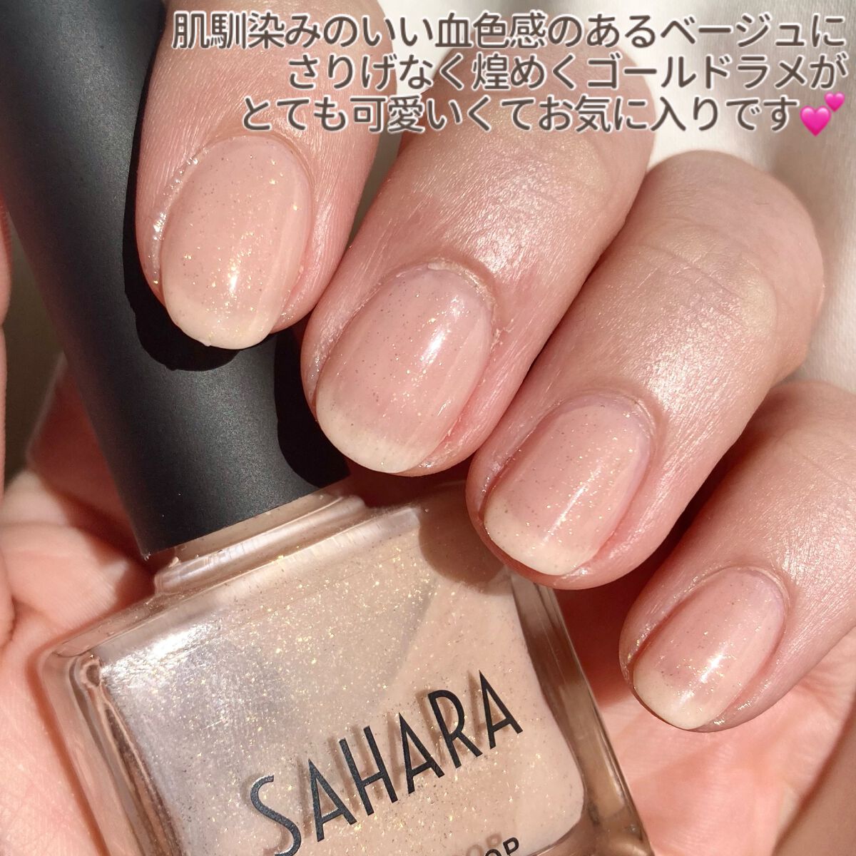 広めのブラシで、爪にフィットしてとても塗りやすかった! 塗った瞬間に広がるテクスチャーで、ムラなく綺麗に仕上がる 一回塗りで程よい透明感のある発色 重ね塗りすることでしっかり発色する! しっかり発色しつつ、ちょうどいい彩度なので手の肌色に良く馴染んで全然浮かない♡ カラーと別で爪を綺麗トーンアップしてくれる乳白色のベースコートや1分で速乾タイプトップコートもあるので一緒に使うとより綺麗な仕上がりになる 個人的にパール入りの010Sahara が一番可愛くてお気に入り!