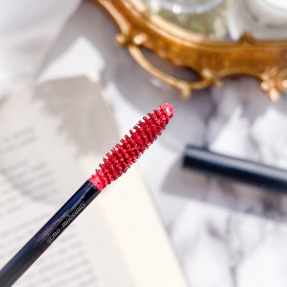 手に出した時は、結構赤い!って思ったけど、程よく透明感があるのか、まつ毛の色と重なると意外と馴染んで好きでした❣️ やっぱり、黄みが少しある赤で、使いやすいカラー 赤系はボルドーとかが多いので、この黄みがあって明るい赤は新鮮✨ マスカラ自体の使い心地としては、ブラシが意外とコンパクトで扱いやすく、液が無駄についてしまわず調節しやすい♪ ボリュームが出るタイプより、長さが出るタイプで、セパレート力が結構あるかも 滲まずにキレイなカラーを1日楽しめた🧚
