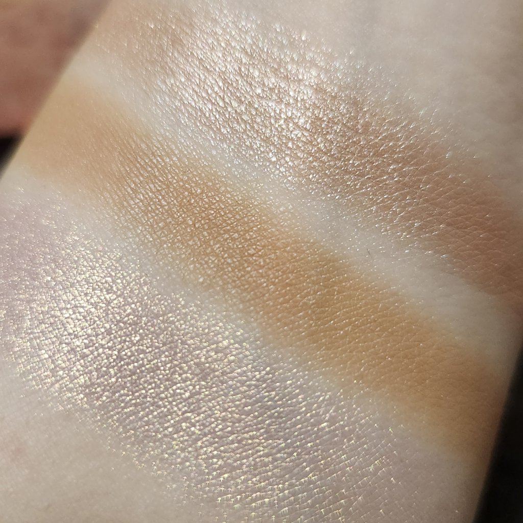┈┈┈┈┈┈┈┈┈┈▷MACエファベセンスエクストラディメンションフェイスコンパクト:ライト(フェイスバウダー)ハイライト、チーク、シェーディングがひとつになったホリデー限定品🎀なんと今回楽天の公式ショップで半額クーポンで購入🥹欲しかったライトだけ残っててこれは運命…👼即ポチ▫️エクストラディメンションスキンフィニッシュスノーボーリン▫️エクストラディメンションブロンジングパウダーラップ&レディー▫️エクストラディメンションブラッシュグリッヅィー&スプリッツィー┈┈┈┈┈┈┈┈┈┈┈┈┈┈┈┈┈┈┈やっぱりハイライトはMACがすき(実は全部ハイライトと思って買ったのは内緒🤫)このゴールドパールぎっしりの輝き堪らない…🤤このギラギラな煌めきはMACならではだよね(感嘆)ハイライトはツヤツヤ派なのですチークとブロンザーとのことですが、フェイスパウダーとなってるのでアイシャドウにも使えそう🥺チークのピンクゴールドも涙袋に入れたらめちゃくちゃ盛れそうブロンザーもアイシャドウの締め色として使うのにもちょうど良さそう(締め色苦手なのでこのくらいの発色が使いやすい)どう組み合わせても可愛いメイクしかない!!!と思わせてくれるときめきと煌めきいっぱいのパレット🥹💖┈┈┈┈┈┈┈┈┈┈┈┈┈┈┈┈┈┈┈#コスメ購入品#MAC#ハイライト#チーク#シェーディング#ブロンザー#macエクストラディメンションスキンフィニッシュトリオ#推しデパコス#鬼リピハイライト#気分UPコスメ