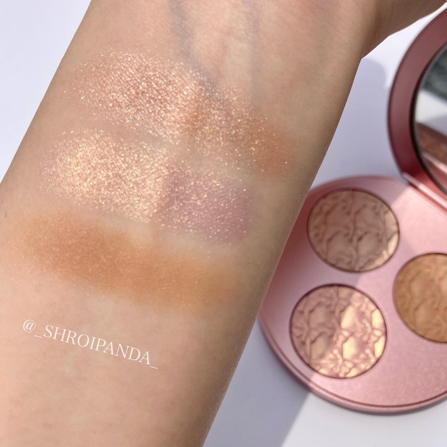 華やかな輝きを演出するエクストラ ディメンションのブロンザー、ブラッシュ、ハイライトカラーが1つに詰まったホリデーフェースづくりのためのパレット。 ハイライト、シェーディング、チークが一つになったマルチパレット 特に、ブラッシュのカラーがチークというよりハイライトとして使うとオーロラのようなパールでお肌に可愛い艶感が出るんです🥲 シェーディングもふんわりと載せるだけで、お顔が小さく見えます❣️