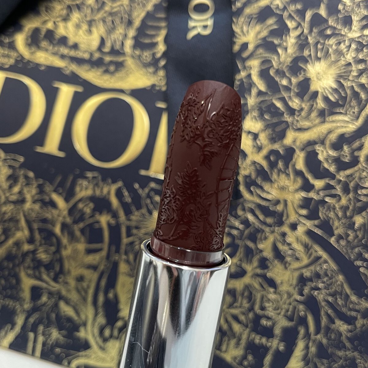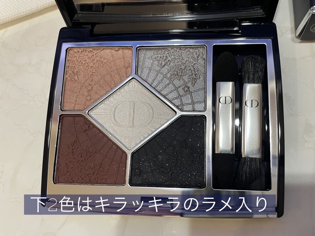 まずアイシャドウから👀 商品名:サンク クルール クチュール カラー:589 ギャラクティック それに写真(4枚目)を見ていただければわかると思うのですが、右下と左下のラメがやばくないですか?! 実物の方がもっと分かりやすいのですがキラッキラで本当に星空のような感じになっています🌟 それに今回捨て色が無いです🤍 真ん中の真っ白なところは、涙袋爆誕させてくれました🥹︎👍🏻 ̖́- テクスチャもとっても柔らかくて、発色もめちゃめちゃ良かったです💖 次にリップ💄 商品名:ルージュ ディオール カラー:913 ミスティック プラム マット こちらザ・ブラウンリップ!っていう見た目をしていますが、使うと紫が少し入った黒寄りの赤みたいな色でした。 またリップも刻印に注目です💄✨ ネットで見るとわからなかったのですが、裏側の刻印が繊細すぎて感動します✨✨ 今回はリップは香りは着いていなかったです! なんだか、アイシャドウもリップも、今の時期ハロウィンにもピッタリな色合いでした🎃🦇🕸