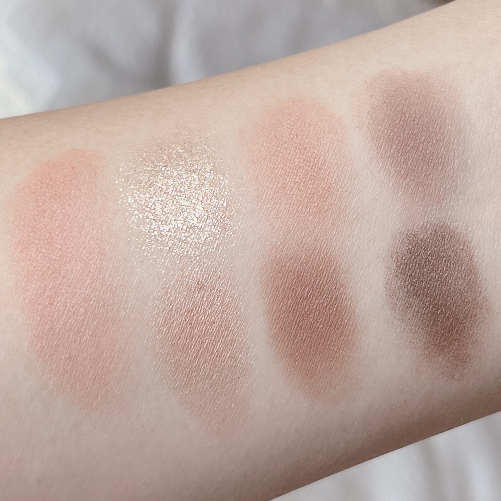 ずっとモーブピンクの方は愛用してるんだけど今回いただいたトレンチブラウンも本当に捨て色がなくデイリー使いしやすくてしっとりとした粉質も◎ 個人的には特に左上のゴールドラメが繊細で好き💎♡