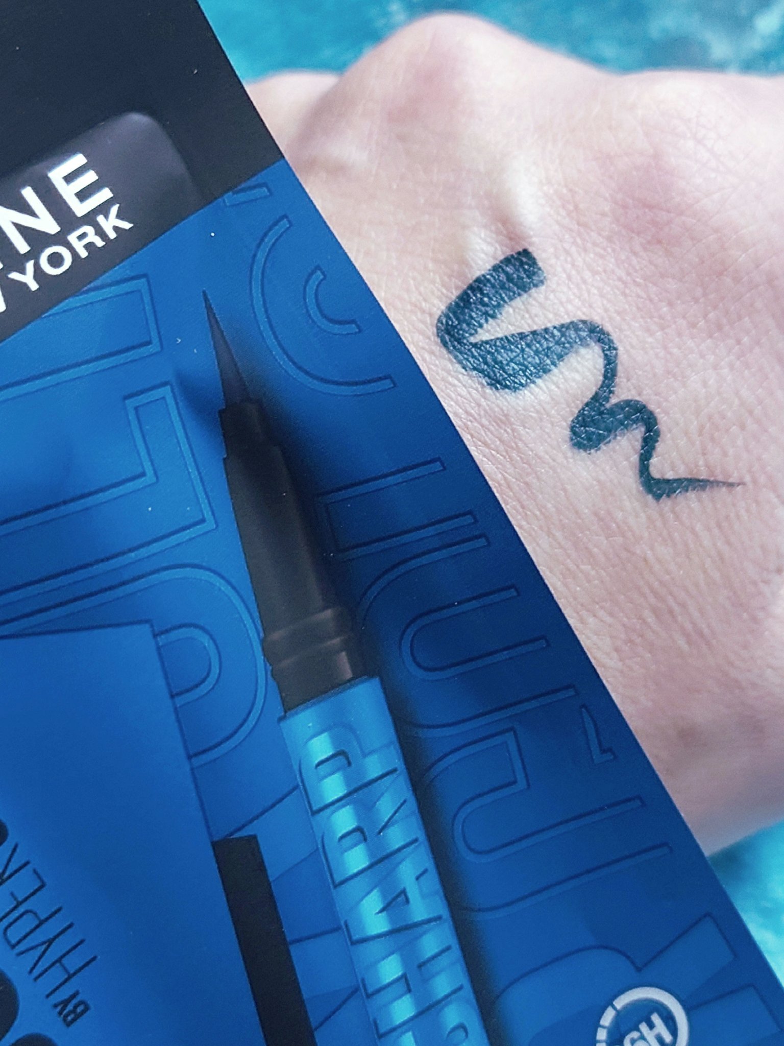MAYBELLINENEWYORKメイベリンウルトラカラーアイライナーNV-2ポップなスモーキーブルースモーキーブルーのこんな感じのカラー。濃すぎず、目元に塗ると黒っぽくも見えるので思ったよりも使いやすいカラーだと思います♡#MAYBELLI...