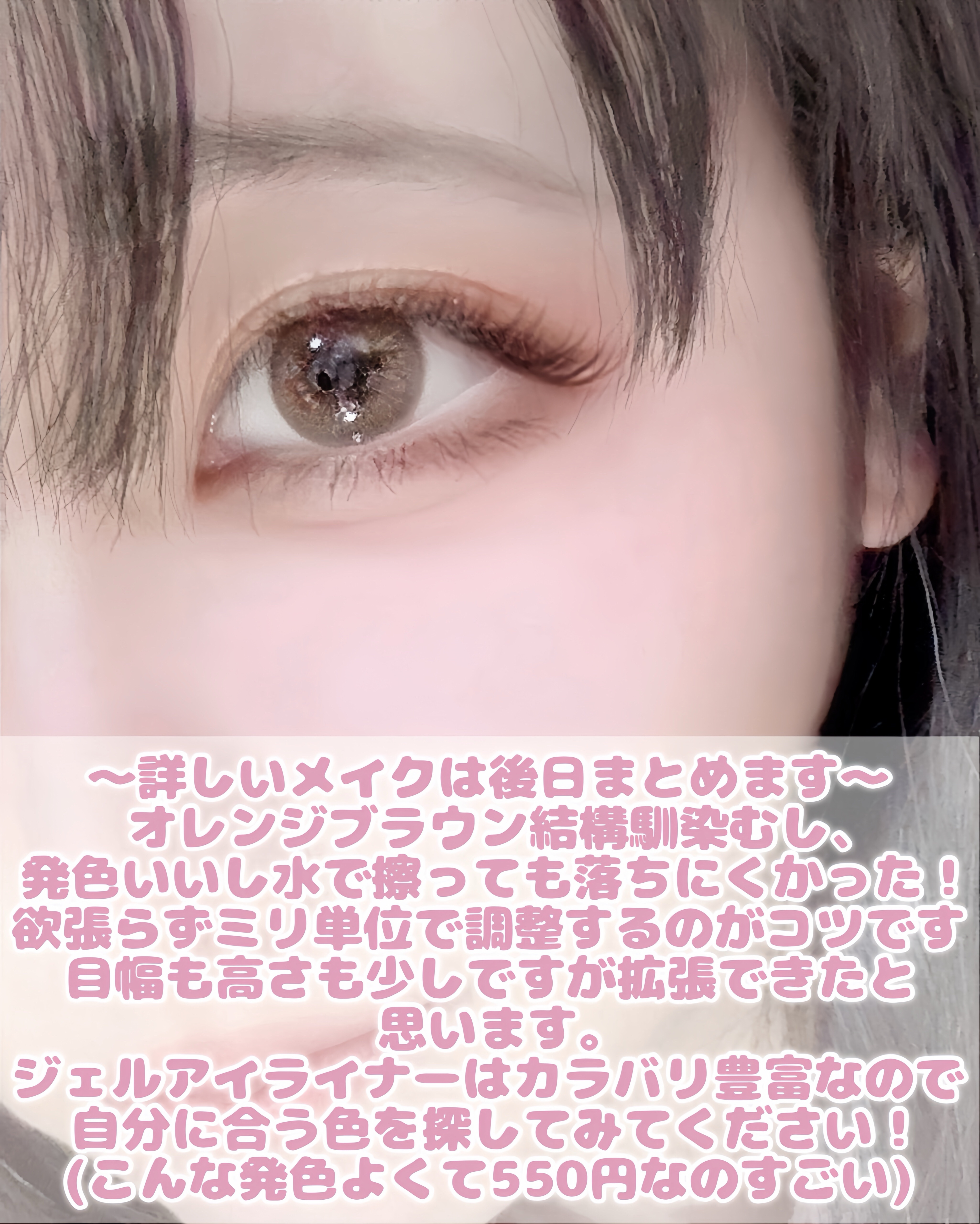 ◤丸目でも切長アーモンドアイになりたい👀!セザンヌで作る目幅拡張メイク🔍◢どうもはうです本日はカラコンつけると、ほぼ白目の余白がなくなるほどの丸目の私が、切長アーモンドアイになりたくて購入したアイライナーをご紹介します📝ぼかせばアイカラーとしても使えるんです🎶*.˚‧º‧┈┈┈┈┈┈┈┈┈‧º·˚.*✔セザンヌ『ジェルアイライナー』(¥550)︎︎︎︎☑︎商品について\目元に滲むような血色感の出るほろ苦いテランッタブラウン/ぼかして使うとアイカラーとしても使える2in1タイプ。オイルリッチ処方でなめらかな描き心地。パール入りで、ウォータープルーフです︎︎︎︎︎︎☑︎使用してみて太すぎず細すぎないペンシルでしたクリーミータッチライナーと同じくらい柔らかくてスルスル描けます🖍目視、オレンジブラウンで目元に馴染む色味でした。小さいラメがキラッとしてます水で擦っても落ちにくくラメも密着してました!ぼかすとふわふわになるのは語るより画像を見ていただいた方が早いかもです︎︎︎︎︎︎☑︎いいところ・イマイチなところ《🥳》まさかの550円・カラバリ豊富オイル配合と書かれながら描き心地硬くて上手く線引けないアイライナーが混入してる中、これは本当に柔らかい…高発色でありながら優しげな印象も作れるのに550円はすごすぎる😭色も9種類あるので自分に合った色、選べます︎👍🏻̖́-《🤔》パール期待勢は足りないと感じるかも何回塗っても肉眼で確認できるパールの量は2個くらい…?ツヤ感を求む方はちょっと足りないかも!*.˚‧º‧┈┈┈┈┈┈┈┈┈‧º·˚.*ジェルアイライナー、試しに使ってみたらよかったのでまとめてみました!全体のメイクは後日投稿させてください📕参考になれば幸いです!ではまた!#セザンヌ#粘膜拡張メイク#目幅拡張#アイライナー#ペンシルアイライナー#ブラウンメイク#オレンジメイク#アイメイク#プチプラコスメ