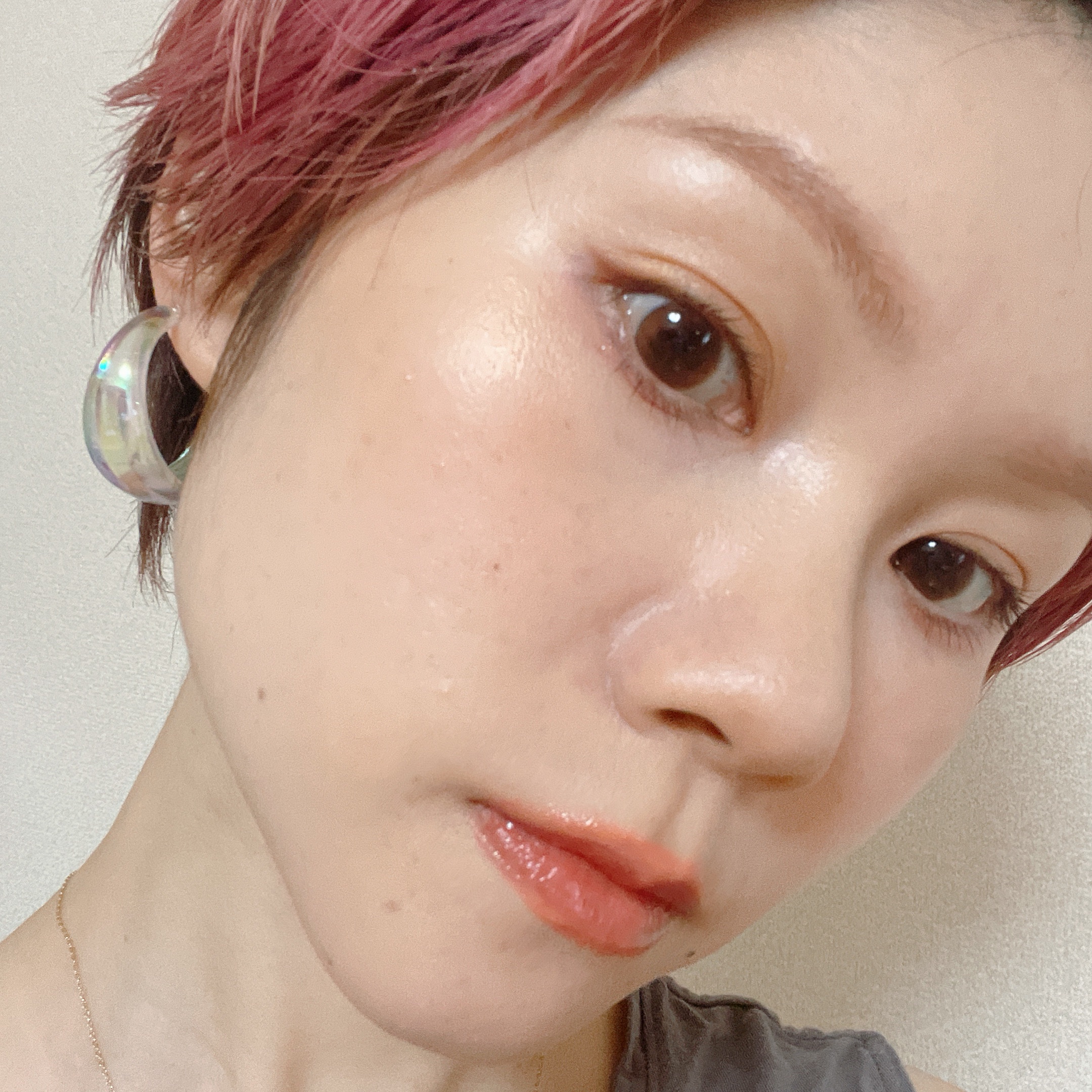 久々のカラコン✨初めて低含水のものにしてみたら、着けてしばらくは浮いて動いてめちゃくちゃ不快だったけどいつの間にか馴染んで快適です。ポルジョのリップは夏が来ても大活躍#ビジュ優勝コスメ#透明感爆上げメイク