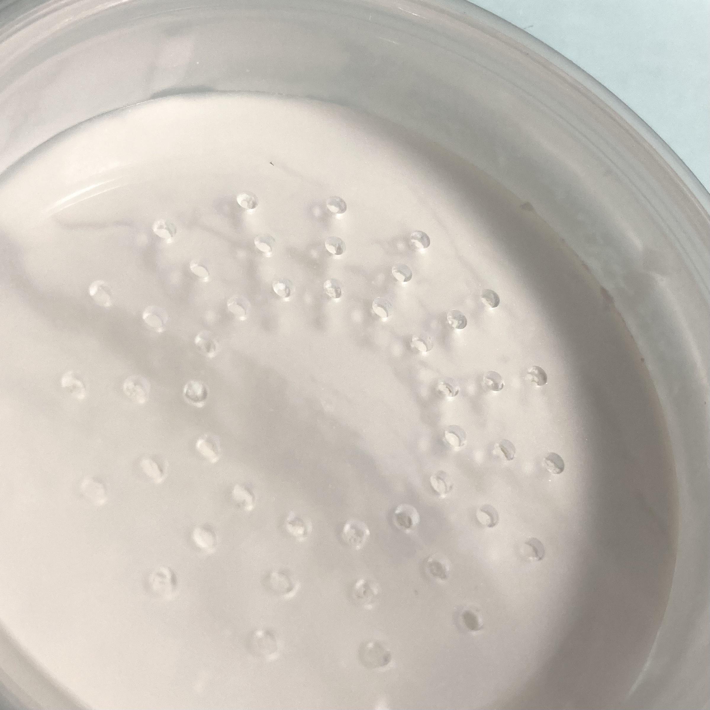 サラッサラの片栗粉のような超微粒子が皮脂を抑えて透明感あるお肌にしてくれる。 メイク前の保湿ケアや、保湿成分配合のベースの上だとより乾燥しにくく感じたよ︎👍🏻♡ お直しに持ち歩けるサイズ感も◎