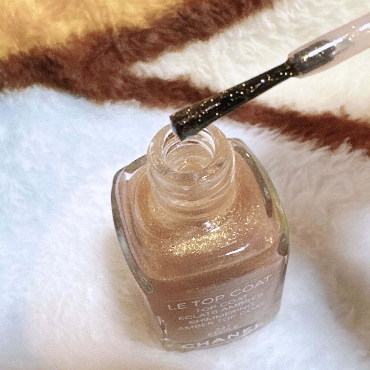 これで本当に最後のホリデー😂CHANELルトップコート347エトワレこのトップコートが素晴らしかったです!❤️ボトルの色を見た時に、黄色っぽくなるのかな?と思いきや、下の色味は邪魔せずゴールドの微細なラメだけが乗る感じ!ルトップコートこんな上品な…まるで星屑のっけたみたいな😭❤️赤に乗せるとクリスマス、ホリデー感が増しますし、ブラウンに乗せても金箔がかったチョコレートみたいになってとっても可愛いです❤️もちろんベージュに乗っけても美しい❤️ディオールのキラキラトップコートと迷いましたが、あちらは下に乗せてる色味が少し白っぽくなったので、こちらにしました☺️❤️