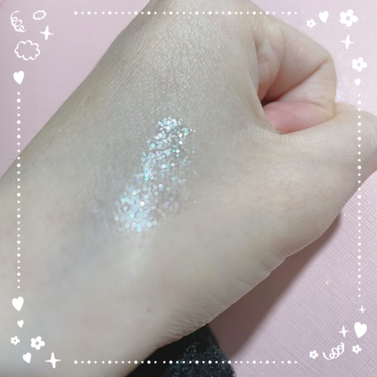 シルバーカラーだけでなく ピンクやブルー?カラーのグリッターが ちらほらと入っていて複雑な輝きをするので 単調な煌めきにならず 観る角度によって違う自分を演出できる グリッターマスカラです😌✨ マスカラを塗布した後のまつ毛は ビューラーでつけていたカールが取れてしまうので マスカラ塗布後に再度ビューラーでカールしてあげると🙆♀️💖 お湯落ちタイプなので メイクを落とす際は簡単なので助かります😌💕