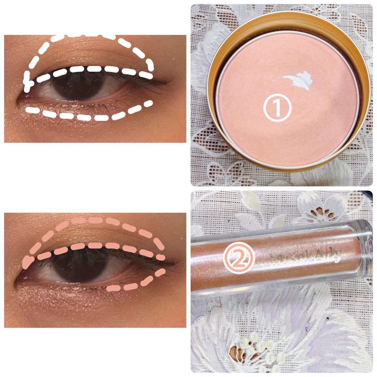 \ふんわりコーラルメイク♡/#今日のメイク#デイリーメイク#メイクレシピ#毎日メイク今日は#パフデチークpk301、#メタルグラマーアイズpk-1、#ミゼルエディスムースアイティント03を組み合わせてみた!①は上下ホール全体に②は二重幅と下目...