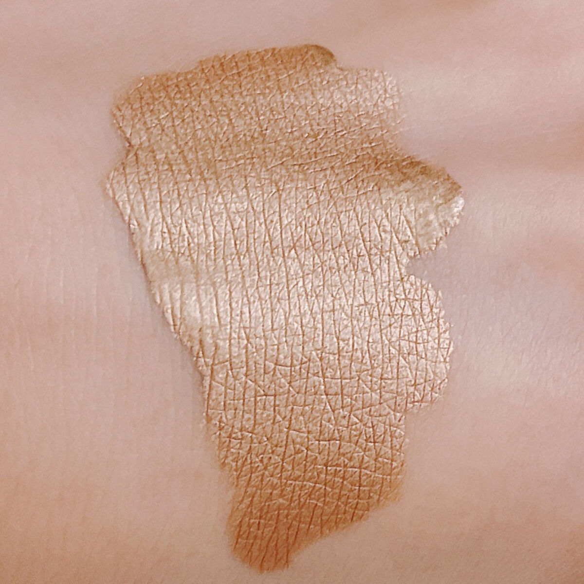 チップで塗ってみた時、発色が良く少しギラギラしすぎるかなと思ったのですが 指でぼかしてみると程よい色づきと光沢で 光の当たり具合によってキラキラと輝くのがとても可愛いです☺️ お色味は、ゴールドブラウンパールとゴールドグリッターが素敵な少し大人っぽい印象のブラウン✨ みずみずしいつけ心地で伸ばしやすく よく密着してよれづらいのに メイク落としはしやすくて良かったです🍀 秋冬にぴったりなカラーが個人的にお気に入りになったので これからどんどん使っていきたいと思います☺️