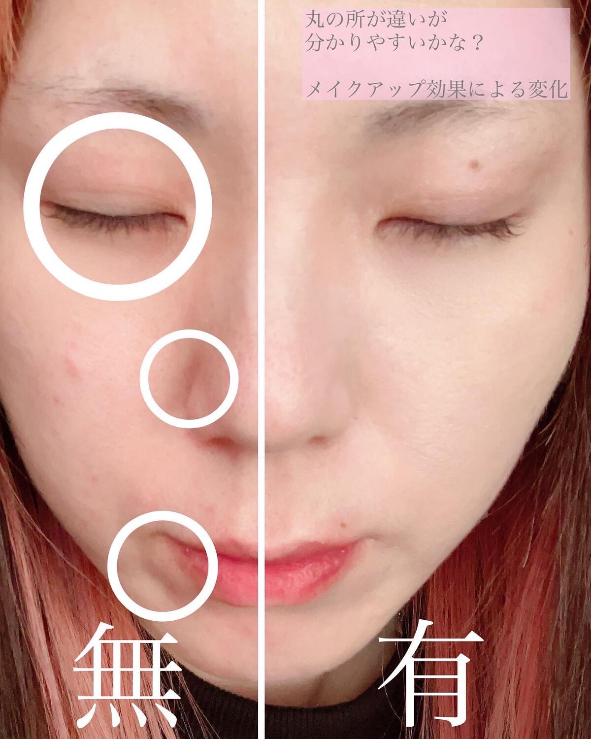 厚塗り感がでないで程よく素肌感を演出してくれる。 軽いつけ心地で◎ 毛穴落ちや化粧崩れもほとんどなかった。 完全にシミ等々が消えるわけではないが、薄いものだと自然にカバーしてくれる。 密着感がすごくて、マスクにほとんどつかない。