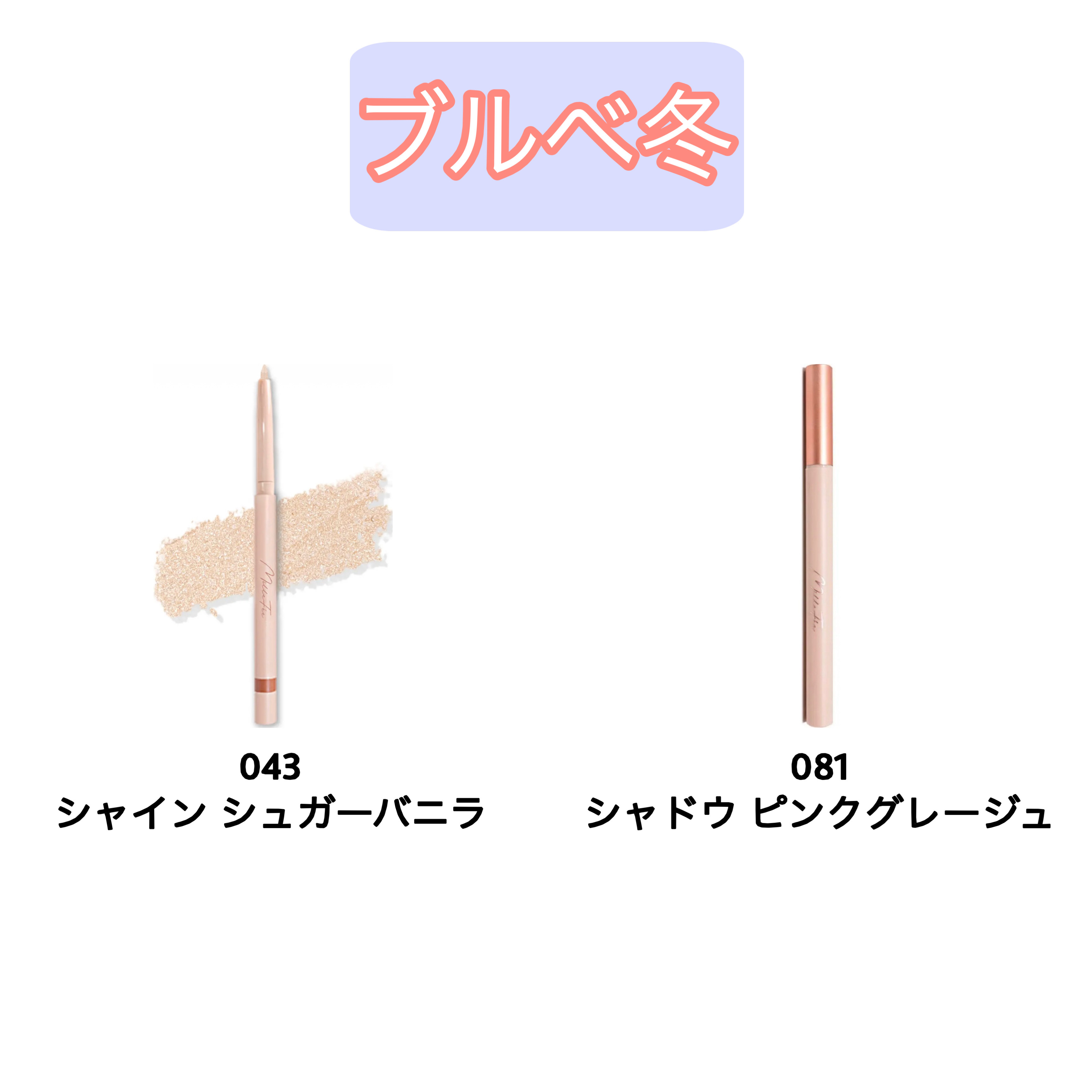 - 081:薄付きの影用アイライナー。影をつけることでよりぷっくり感のあり涙袋に。