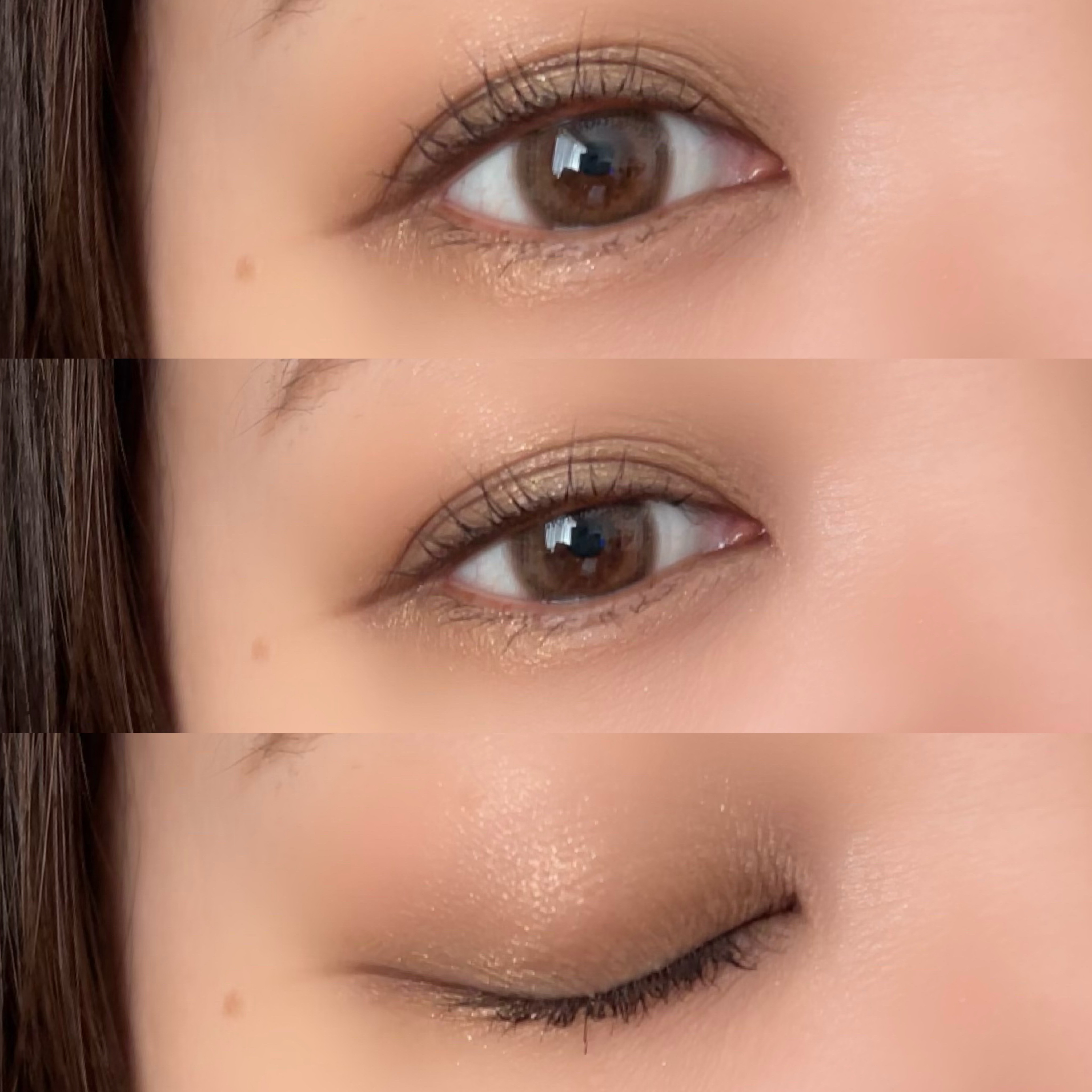 むにむに感はCEZANNEのむにむにハイライトよりも弾力がある感じです 色味はベージュが欲しい!と思いつつ ブラウン、ピンクも迷いました 優しい発色やニュアンスがベージュコスメの 魅力だとは思うんですけどね〜 軽やかで優しげな感じは春先にも活躍すると思う! でもやっぱりこれ単体だと物足りなさはあります笑 ラメ感が美しいのですが調子に乗ると 塗り広げ過ぎてしまうので注意します…🤣 下まぶたに塗るときは コンシーラーブラシとか使うようにしてみました 二重幅には溜まりにくいアイシャドウかな という印象です、今の所 ペトペト感も無く塗るとサラッとします 下地のように使い手持ちのアイシャドウをのせて いい感じを模索中です