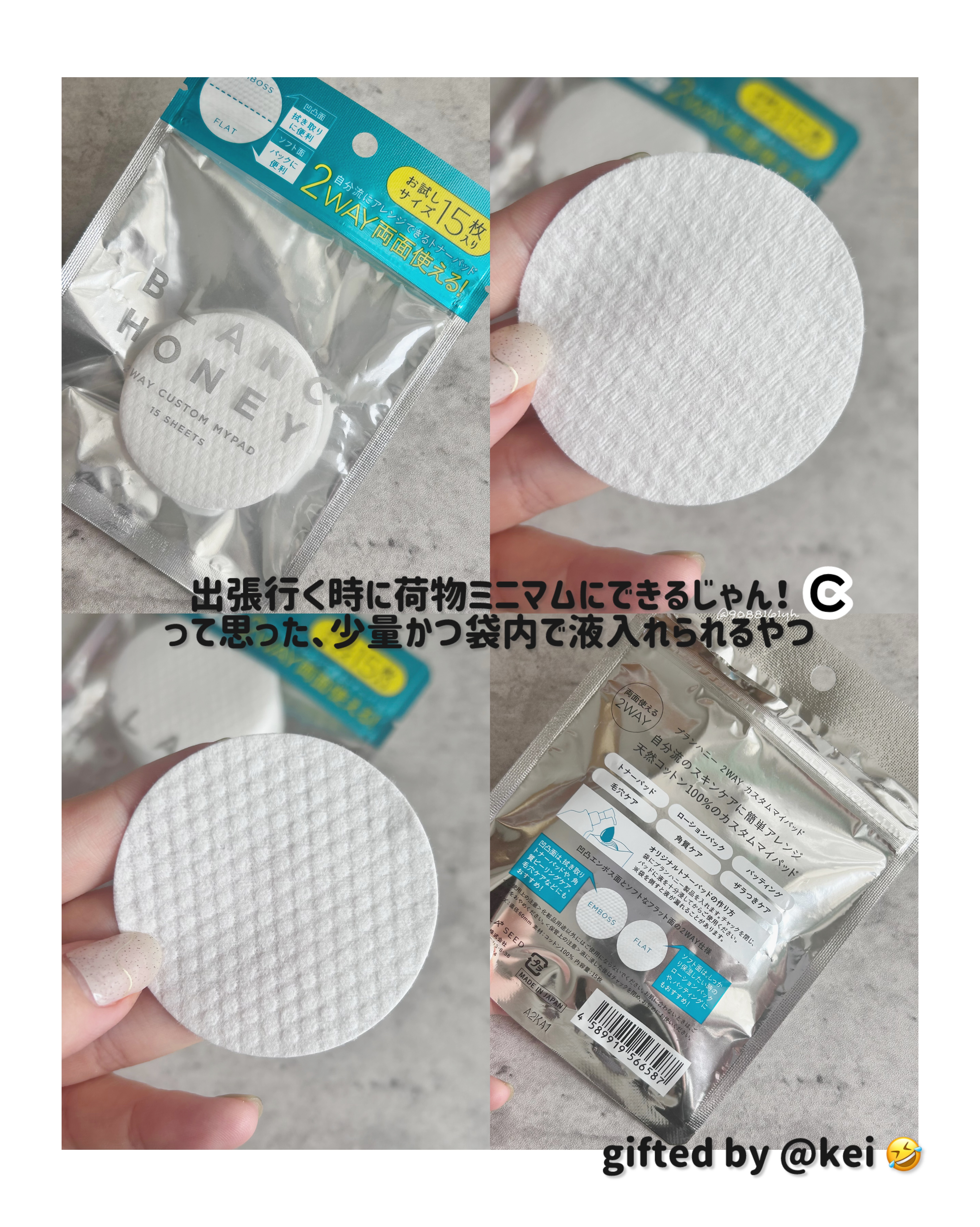 ブランハニー2WAYカスタムマイパッド好きな化粧水を入れてオリジナルのトナーパッドが作れちゃう🫶セルレの福袋に入ってました〰️表はエンボス面になっていて、角質や毛穴ケアに.ᐟ.ᐟ裏はフラット面になっていて、ローションパックやパッテ...