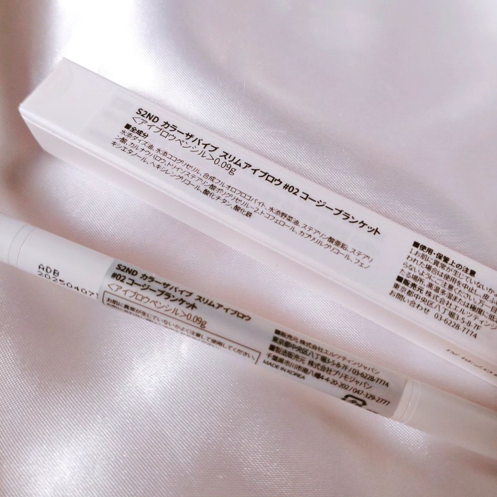 最初から最後までビューティを楽しむ/こんな意味が込められている「S2ND(エスツーエンディー)」@s2nd_jp簡単にメイクを楽しむ「EasyBeauty」を目指すメイクアップブランドです💄✨こちらのきれいな発色で自然な眉を演出するアイブロウ【カラーサバイブスリムアイブロウ】を使ってみました😊✨汗や皮脂などの油分ににじみにくく、一日中ロングラスティングだそう!これからの季節に◎わたしが使ったのは、なぎなたタイプと極細タイプの2種類のうち「極細タイプ」でお色は「02コージーブランケット」明るめのブラウン🤎あか抜けて見えてかわいく仕上がるよ🥰線が細く描けるし、力加減で色の濃さも調節できるし、ナチュラルな眉にしやすい👌スクリューブラシもついてるから、眉の流れを直したり、アイブロウをぼかしたりと使える👍使いやすいアイブロウなので、チェックしてみてね😉💕今ならセール開催中📣・S2NDQoo10公式ショップメガ割6月1日~12日・エルツティンQoo10公式ショップメガ割6月1日~12日・楽天スーパーセールも開催予定#S2ND#エスツーエンディー#アイブロウ#眉メイク#カラーザバイブアイブロウ#カラーザバイブスリムアイブロウ#メイク #S2ND口コミ#楽天#Qoo10#メガ割#コスメ垢#美容垢#コスメ紹介#コスメレポ#コスメレビュー#LIPS投稿アワード_Qoo10メガ割