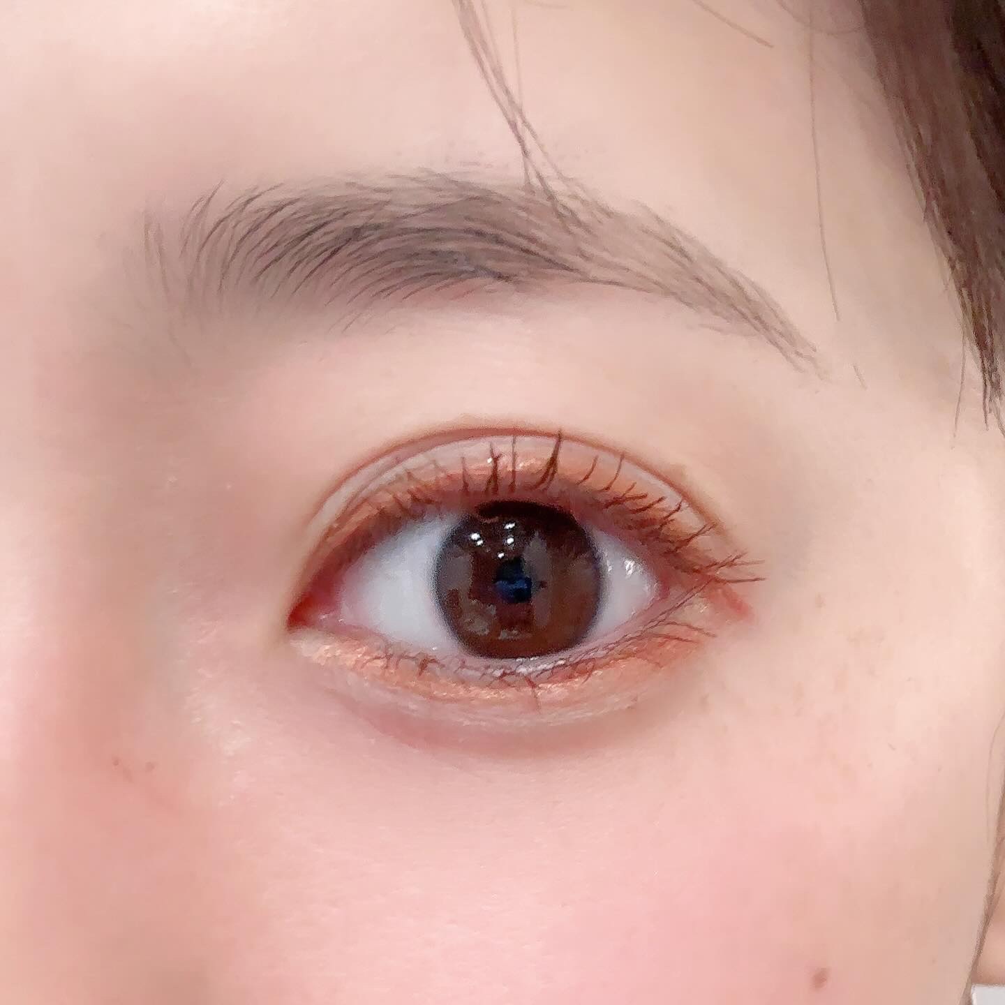 ほのかに赤みがある琥珀色のカラーマスカラと肌なじみが良いオレンジライナーと合わせて温かみのあるオシャレな目元になれるオレンジアンバー。 ライナーはラメ入りでキレイな発色。するする描けるライナーだから痛みもなくひけたライナー。私は1本引いて指を使って広げたよ!