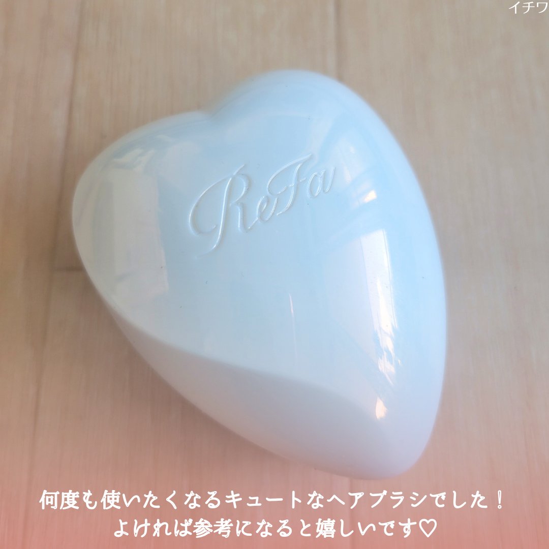ReFaハートブラシハート型でころんとしたフォルムが可愛いReFaのハートブラシ💕コームの硬さがちょうど良くて頭皮に当たると気持ちいいプラスチックなので髪のツヤ感はあまり期待はできないかなぁと個人的に思いました髪を梳かすのにはいい感じ、目が細...