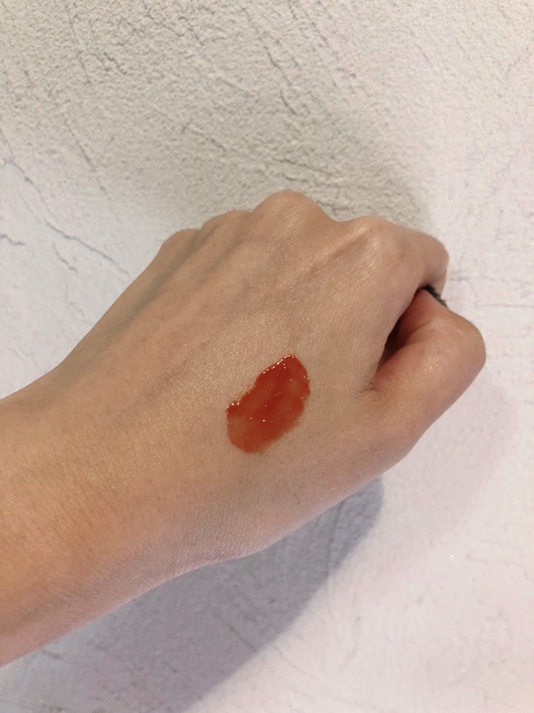 透明感があるので強い発色ではないですが、黄味のあるオレンジです。 透け感があるのでぱっきりしたオレンジではありません。 水っぽくうるうるしたツヤになります。 Lakaのリップ製品の中ではグロスであることもあり、透け感とツヤ感が強いです。 透け感のある発色で、強めの色に見えても案外馴染む。 透け感があるので、あまり似合わない?と思うような色でも自分の唇の色に影響されて大事故は少ないように思います。