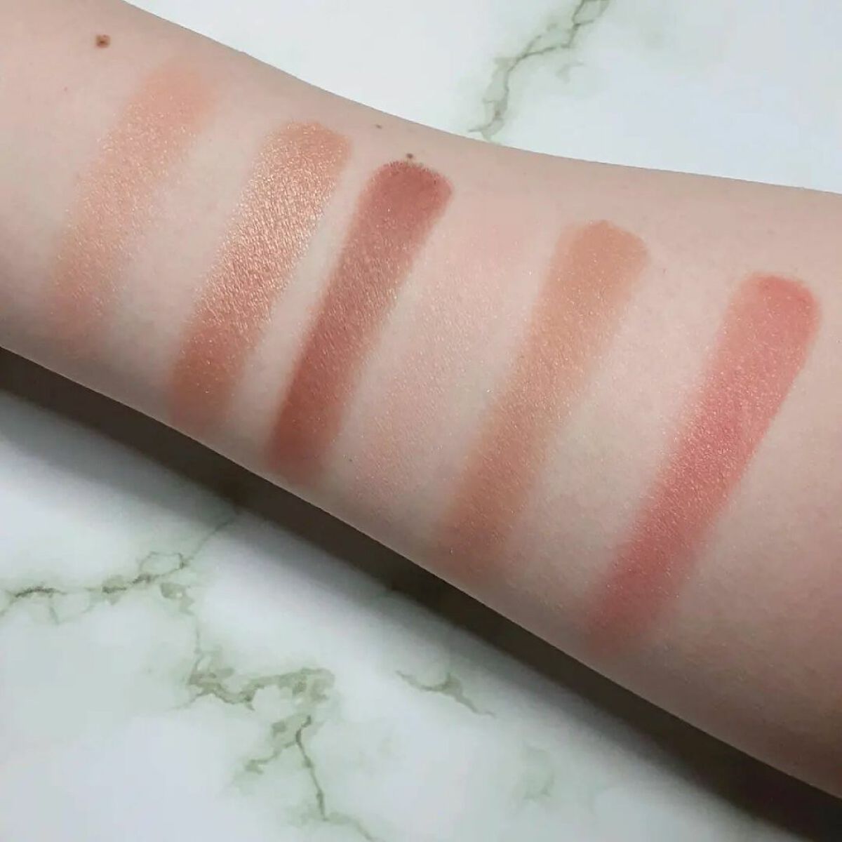 アイシャドウ ハイライト チークと オレンジ&コーラル&ブラウン系のカラーが 詰め込まれたパレット ベルドペシュみたいに プレスはかためなので 最初は表面しっかり削れる 硬めのブラシでしっかり取るのをお勧めします✨
