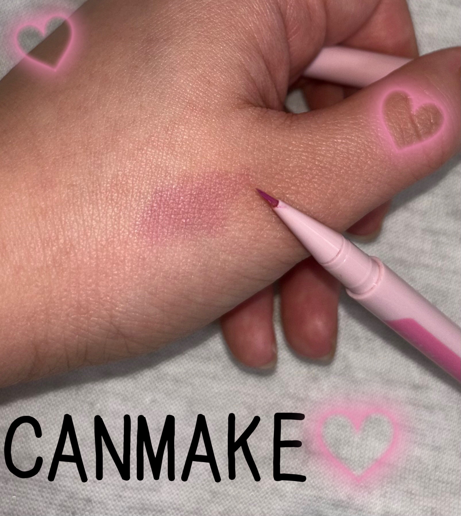 自然でリアルな血色を叶える、絶妙な透け発色ライナーです🌷 色が可愛いのにやりすぎてる感もなく、とてつもなくこれまた自然にうるうるきゅるきゅるになります。 発色が強すぎずなのがこれまたちょうどいいところを狙ってきてくれています😓 筆先が極細なのでどんな線も描きやすい🪷 持ちもいいので、夜までしっかりきゅるきゅるピンクがキープされています🌙 ふたえ強調・涙袋の影・アイプランパーといろんな使い方ができるのもうれしい一本になっています🌈🌈🌈 私は下まぶた目頭側のキワにほんのり描いて使っていますが,これまたマッコトきゅるきゅるで可愛すぎる目元が完成します🐇💖💖💖💖 このめちゃかわが770円、、キャンメイクさま本当に毎度毎度感謝しかありません🥵💦💦💦