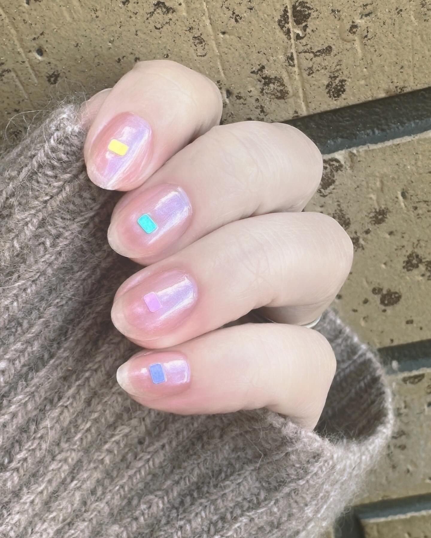 ワンポイントにホロ載せネイル💅ADDICTIONTOKYO139PLoveVision1度塗り。このカラーお気に入り♡定番カラーにならないかな☺️#セルフネイル#ネイルポリッシュ
