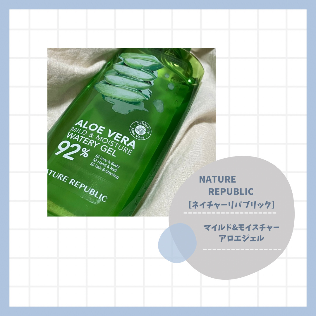 ܰNATUREREPUBLIC(ネイチャーリパブリック)マイルド&モイスチャー アロエジェル ボトルタイプ310mlܱ洗顔後の顔のマッサージに使っています。もう、かれこれ4〜5年は使っていて、私に持ってはなくてはならないアイテムです!顔や髪、全身の保湿に使える優れ物。保湿以外に除毛する時など、別の用途にも使えるので、便利です。値段も600円くらいなので、手が届きやすいので、おすすめです✨#ネイチャーリパブリック#マイルド&モイスチャーアロエジェル#アロエジェル#ボトルタイプ#韓国コスメ#保湿#ボディケア#スキンケア