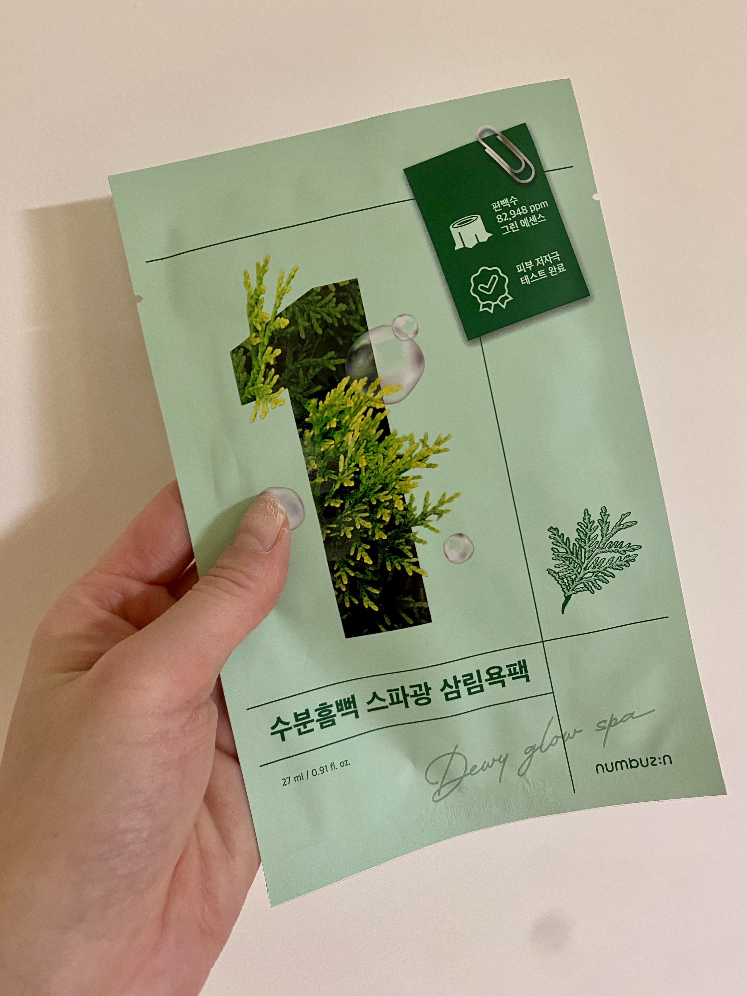 numbuzin(ナンバーズイン)1番🌲ヒノキ水81%シートマスク(今はリニューアルして変わってるみたいです✨)🫥使用目安10-20分\保湿力抜群の水分チャージマスク🫧/薄緑色で、ガーゼっぽく見えるけどツルツルした素材感のシート。袋から出す時...