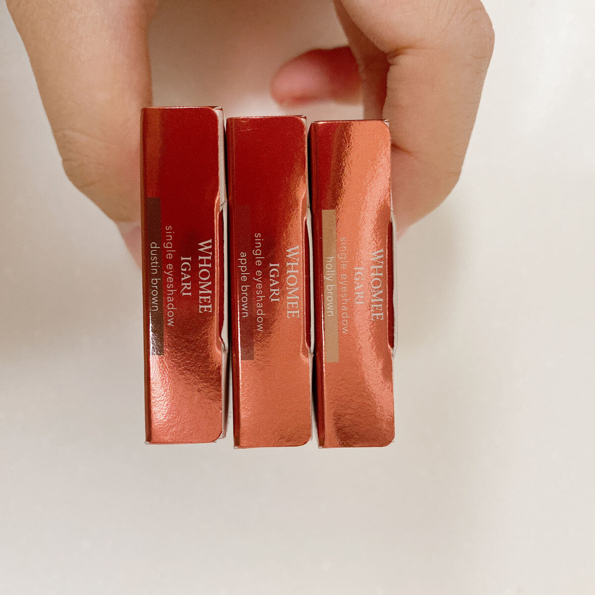 WHOMEEシングルアイシャドウ/アップルブラウンダスティンブラウンホリーブラウンふんわり発色で可愛いしっとりした質感で指で塗っても綺麗!ラメも可愛いけどマットもオシャレで可愛い😍#WHOMEE#シングルアイシャドウ#whomee