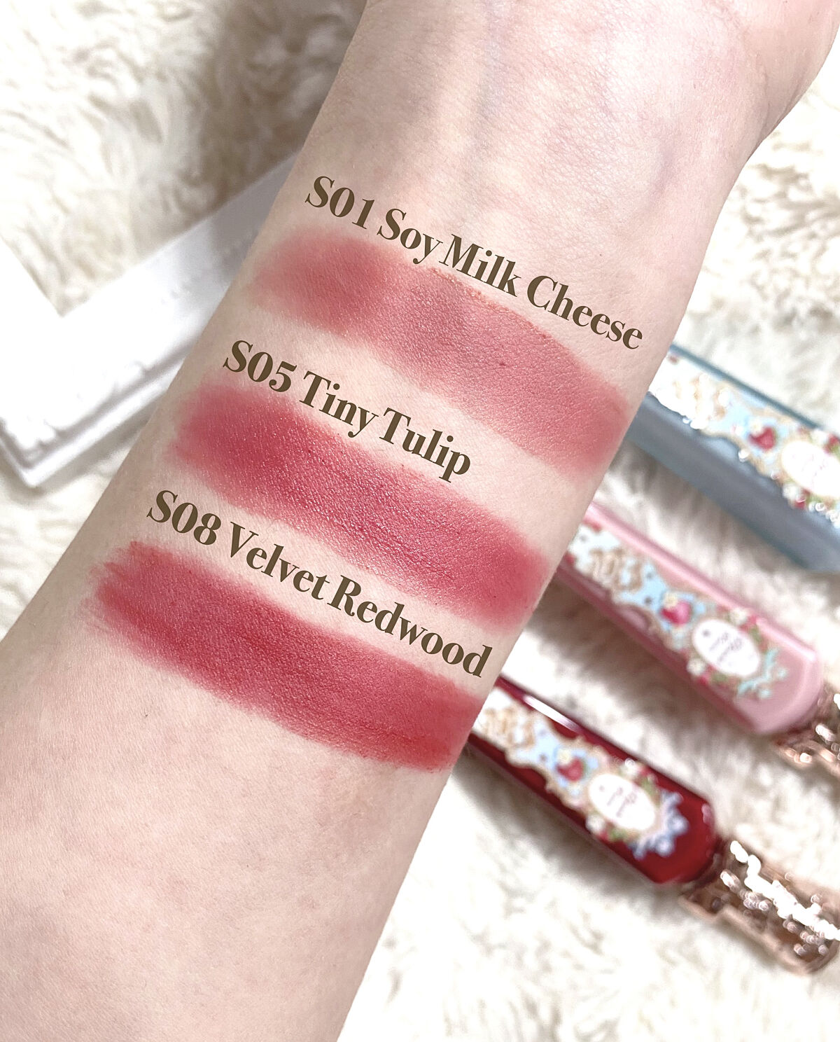 【FlowerKnows】★全色レビュー★『ストロベリーロココシリーズ/クラウドマットリップ🍓』フラワーノーズの新作!ストロベリーロココシリーズのリップ全色スウォッチです!お待たせしました…😾💦!!【商品の特徴】●水色、ピンク、赤パケがそれぞれ3本ずつの、計9色展開!●パッケージから色味のベースがそのまま分かりやすく作られてます!💙水色はイエベさん向きの肌なじみの良い使いやすいカラー!💗ピンクは少しイエベ~ブルベさん向きのものが多く、ピンクベースのあざと可愛い系リップ!♥️赤はブルベさん向きのローズ系の赤ベースリップ!王道の真っ赤ないちごカラーもあったりと上級者向きな感じがします🎪【使用感】●マットですが、滑らかで軽いつけ心地なのでもったり感ナシ!🙆♀️●ティッシュオフしても色味が変わりにくく、落ちにくくなります◎【良いところ】●小さな香水瓶のような、飴ちゃんのようなツヤツヤパッケージがとにかく可愛い…!●最推しカラーは、水色パケの03番のブラウンリップです…🤎ブラウンリップはやっぱり可愛い😿♡プレゼントにもオススメです- ̀͏̗🎁 ́͏̖-┈┈┈┈┈┈┈┈┈┈┈┈┈┈┈┈┈┈┈┈#flowerknows_リップ#ストロベリーロココ#中国コスメ#パケ買い#中国メイク#マットリップティント#マットティント#フラワーノーズ#フラワーノーズ_リップ#FlowerKnows#ブラウンリップ#ピンクリップ#赤リップ#あざとピンク#デートメイク#クリスマスコフレ紹介#MyBestCosme