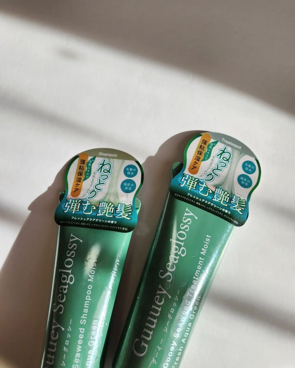 グーイーシーグロッシーシーウィードシャンプーモイスト/シーウィードトリートメントモイストネバネバ成分フコイダンエキス配合で、キューティクルをコーティング&頭皮に薄い保護膜を形成。濃密な海藻包み込み美容で、毛先までまとまる艶美髪へ導くシャンプー&トリートメント。海藻の「フコイダンエキス」配合といえば、シートマスクなどスキンケアで使ったことがあるのですが、まさかヘアケアに入っているアイテムは初めてで期待感大。「フコイダンエキス」といえば独特のネバネバ感がしっとりして好きなんですが、このシャンプーもネバッとしたテクスチャーになっています。しっかり予洗いをしてから泡立てるか、泡立ちにくいと思ったらシャワーで水気を足すのがおすすめ。そうするとモコモコの泡が立ち上がって地肌までスッキリ洗えた感覚がありました。トリートメントはいわゆる泥パックのようなしっとりとした感じです。洗い上がりの髪はしっとりめではありますが、それで重くなりすぎると言うこともなく、程よく洗浄力としっとりサラサラ感のあるアイテムだなと思いました。フレッシュアクアグリーンの香りが爽やかですが、そこまで香りも強くないので強い香りが苦手な方も使いやすいかなと感じました。#モニター #グーイーシーグロッシー#ヘアケア#保湿シャンプー#フコイダン#艶髪@liberta_item