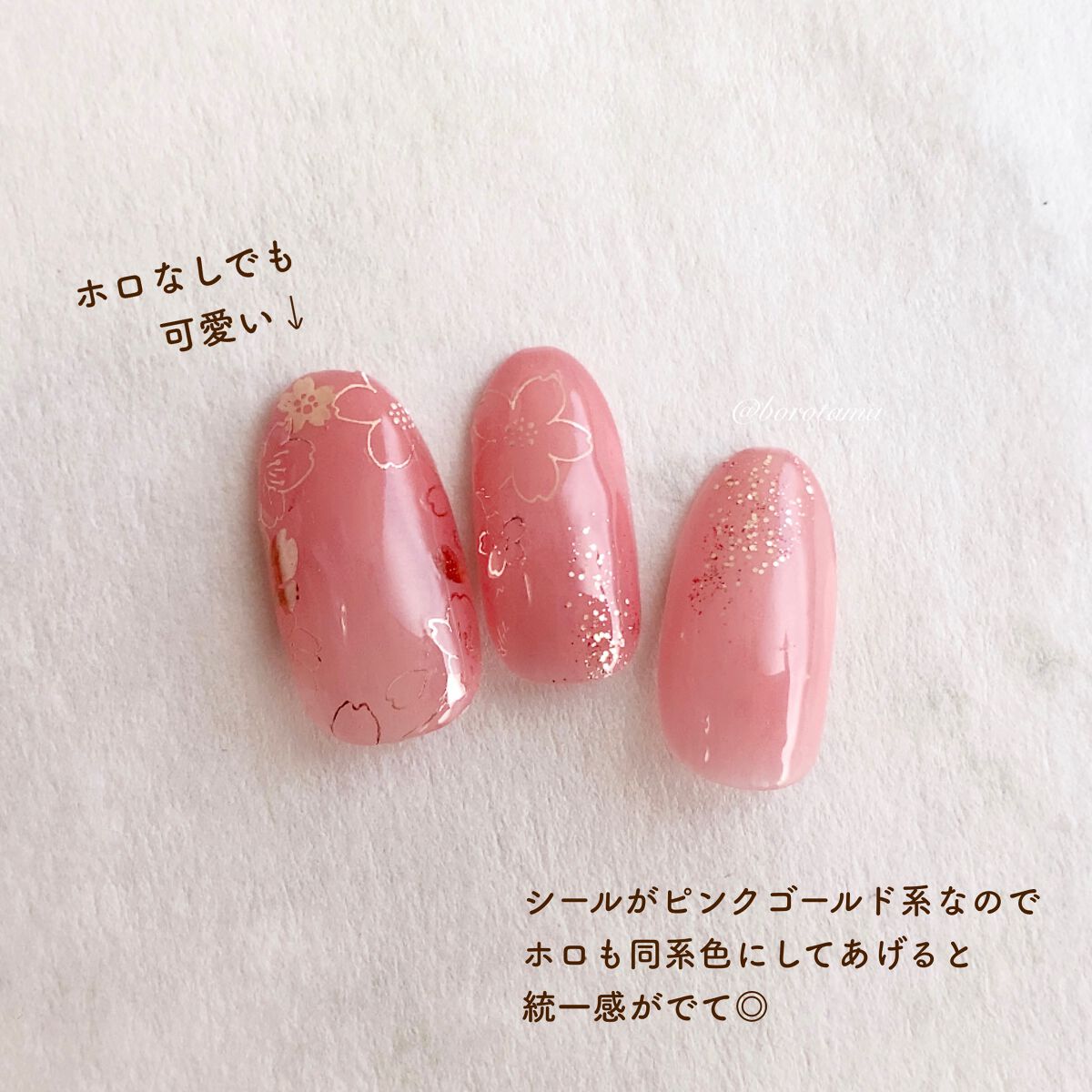 桜ネイル🌸 なんとこのシールはSeria✨✨ 桜の新作が2種類でてたんですがどっちもオススメ〜! Seriaのシールはシーズン到来するとよく売り切れちゃうので、ちょっと早めに購入しておくのが○ 作り方もすっごく簡単なのでぜひ挑戦してみてねー! 私はラメを仕込んで置くのが好き〜!シールと合わせて手元傾けたときにキラキラするのがお気に入り💖 シアーカラーは塗りムラにもなりにくいのでネイル初心者さんでも失敗しにくいと思います✨ 売り切れる前にSeriaチェックしてみてね😉