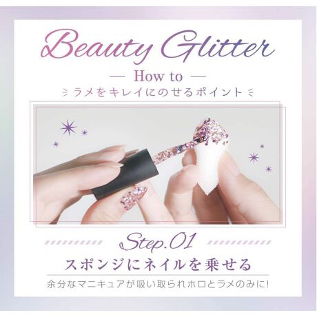 ネイルポリッシュ オーロラのホロラメがざっくざく⭐️ 大粒のホロと、キラキラのラメがたくさん入ってるので、キラキラネイルをしたいときにもってこいです⭐️ かわいい💗ポイントにもなる✌️🎶 スポンジでポンポンすると使いやすいです◎公式でもそのやり方を推奨しているみたいです✨ あとは爪楊枝などでホロを取って付けるのも◎