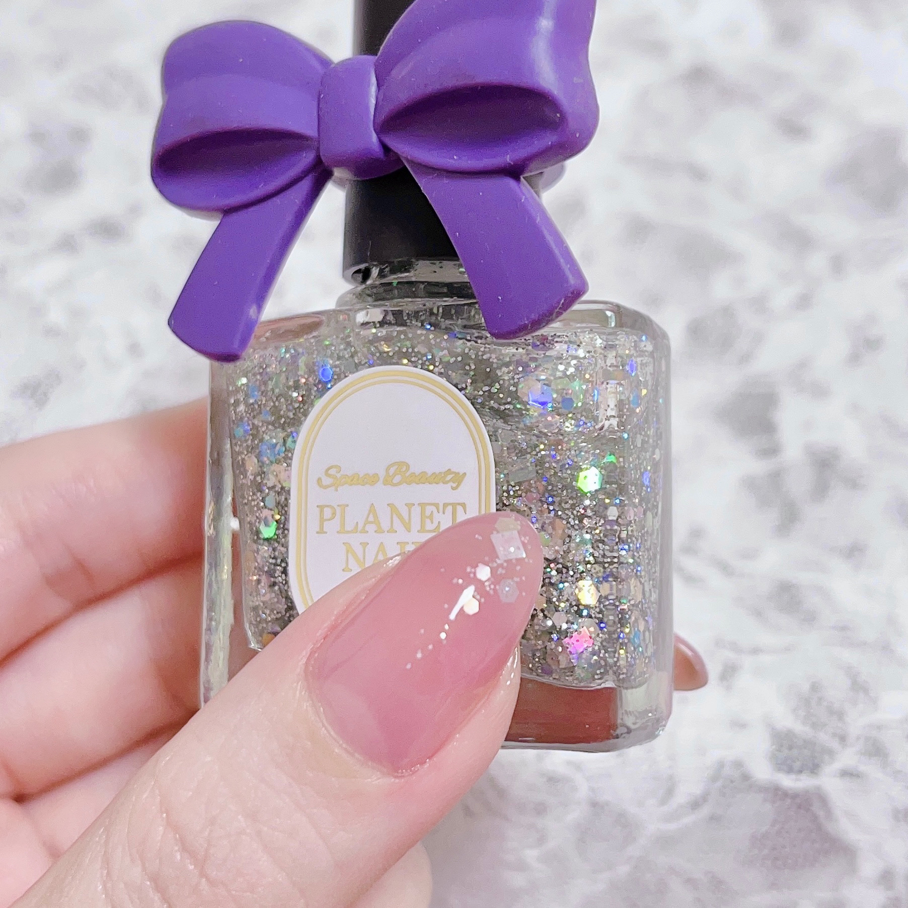 オーロラに輝くホロがかわいい🤍【使った商品】PLANETNAIL ネイルポリッシュPLB14 トレミーの秘密【商品の特徴】ネイルポリッシュオーロラのホロラメがざっくざく⭐️【使用感】大粒のホロと、キラキラのラメがたくさん入ってるので、キラキラネイルをしたいときにもってこいです⭐️【良いところ】かわいい💗ポイントにもなる✌️🎶【使い方】スポンジでポンポンすると使いやすいです◎公式でもそのやり方を推奨しているみたいです✨あとは爪楊枝などでホロを取って付けるのも◎#PLANETNAIL#ネイルポリッシュ#プラネットネイル#推しコスメを語ってPLになろう