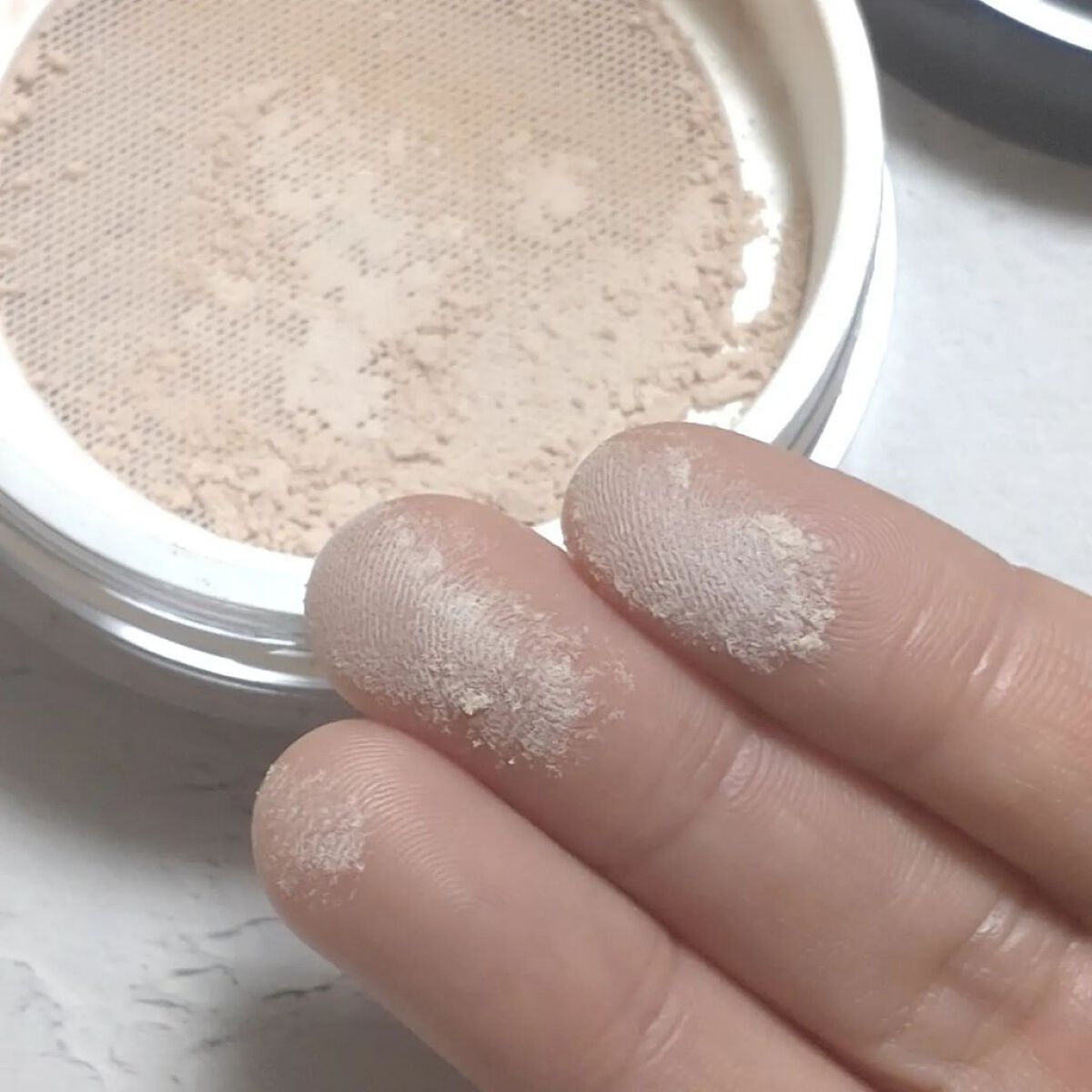 細かい粒子で肌当たりが軽く素肌っぽく自然に馴染みます 指に取ると白っぽく感じますが実際に塗ると白浮きせず透明感があり、ほんの少しつやも出るような… 使用感が軽くて塗ってることを忘れるような快適さで時間が経っても乾燥しにくくいところも気に入ってます 毛穴もフワッとカバーしてくれ重ね塗りしても粉っぽくなりにくいと感じました ふわふわの厚手のパフも気持ちいい お値段も高くないので試しやすいパウダーです