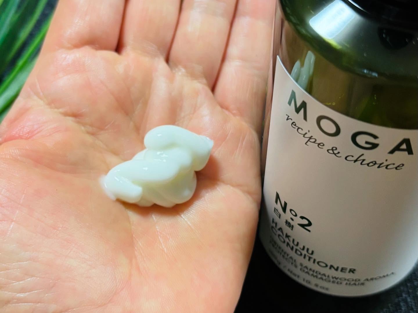 グリーンがかった色のボトルに入った植物由来成分を99%*以上配合のMOGANS白樹ノンシリコンアミノ酸ヘアケアです落ち着いた感のボトルが、とても素敵ですねシャンプー300ml、コンディショナー300gです少し小ぶりな感じですね石油由来界面活性剤、ラウリル硫酸Na、DEA、MEA、TEA、シリコン合成ポリマー、合成香料、フェノキシエタノール、パラベン不使用だそうです白樹は、やわらかく細い髪やダメージヘア向けの方へオススメです泡立ちがはやく、ふんわりとした感じの泡のシャンプーですねウッド系の香りです白檀のような落ち着いた感じの香りがします穏やかさに包み込まれるような、ウッディでほのかに甘い香りだそうですシャンプーの使用方法が少し面白いです泡立てた後、1分くらい放置して髪をシャンプーパックしてから流しますコンディショナーもシャンプー同様に白檀のような良い香りがしますこちら先ほどご紹介しましたが、合成香料不使用なんですサンダルウッドの精油を使用しているようなのですが、精油でこんなにしっかりと良い香りがするんですねコンディショナーも髪全体にしっかりと付けてからパックですこちらは、3分から5分くらい時間を置いてから流すと良いそうです私は、湯船に浸かりながら放置していますドライヤー後の髪の仕上がりは…ツルツルサラサラとした手触りですね髪がとても長いのでどうしても毛先が傷みがちなんです髪の傷み方や、個人差などはあると思うのですが私は、いつもドライヤー時に使用していたヘアオイルをやめました毛先までサラツヤのMOGANS白樹のヘアケアお手入れ後の髪の手触りや、ウッド系の素敵な香りを楽しんでね*水を含む