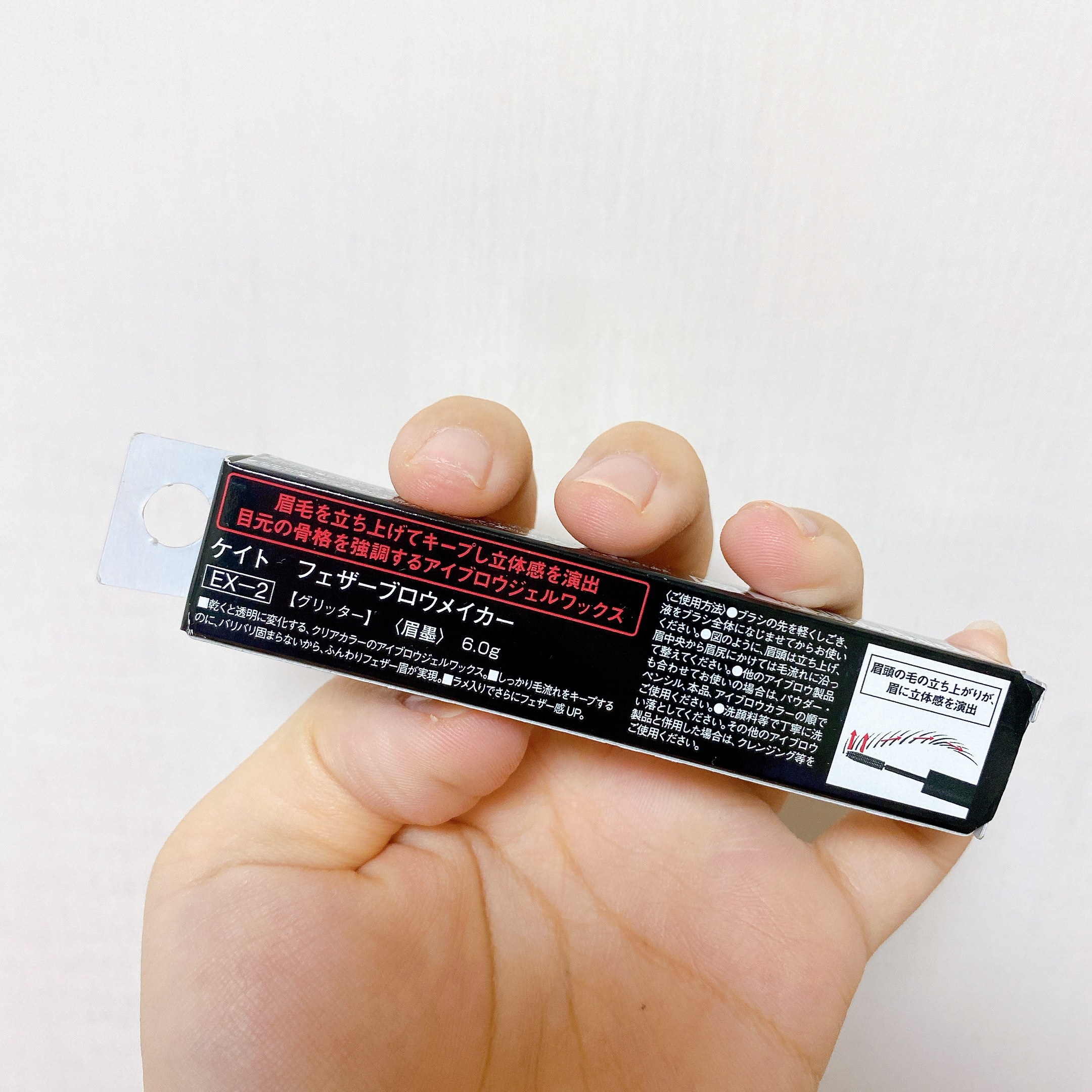 KATEフェザーブロウメイカーEX-2グリッターノーマルタイプかと思って買ったらまさかのグリッタータイプの方でした🥲スウォッチだと普通にキラッキラしてますが実際に使ってみるとそんなにラメが気にならないかも?コレの後に眉マスカラ塗ってるからかもしれないです!簡単に眉毛が立ち上がって凄く立体的になります☺️ブラシの大きさもヘビロテの眉マスカラくらいだったので割と塗りやすいと思います👍パリッパリにならないし普通にクレンジングで落とせました☺️!順番としてはパウダー&ペンシル→コレ→眉マスカラって感じです!ノーマルタイプが売り切れてたりするので最後眉マスカラするならグリッターでも代用可能なんじゃないかな?と思います🤔仕上がりは眉頭の辺りを見ると分かりやすいかと思いま