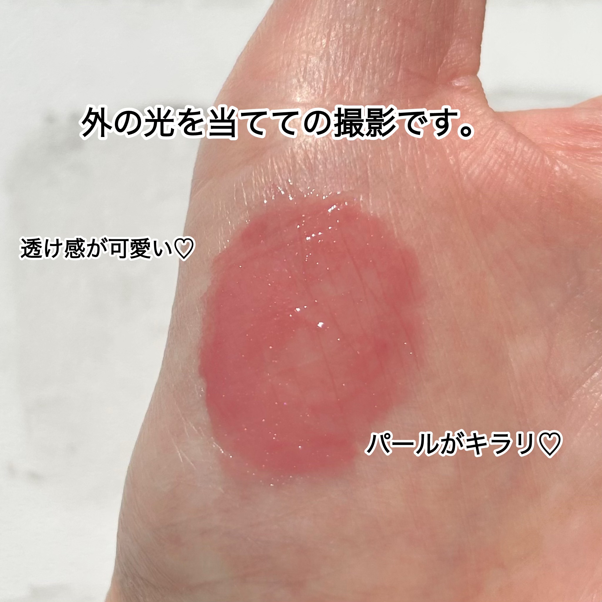 透け感のあるローズカラー 1本で使うのも〇他のリップと使うのも〇 少しスースーするけど全然痛くない 強くない良い匂い 少しベタつく マスクについてしまう 保湿力◎ 色持ちは普通 ティントではないのでマスクとかには普通についちゃうけど、可愛いから買って後悔なし🧏🏻♀️ 見た目もローズカラーも本当に可愛くて、先行販売でゲットして本当に良かった🎶