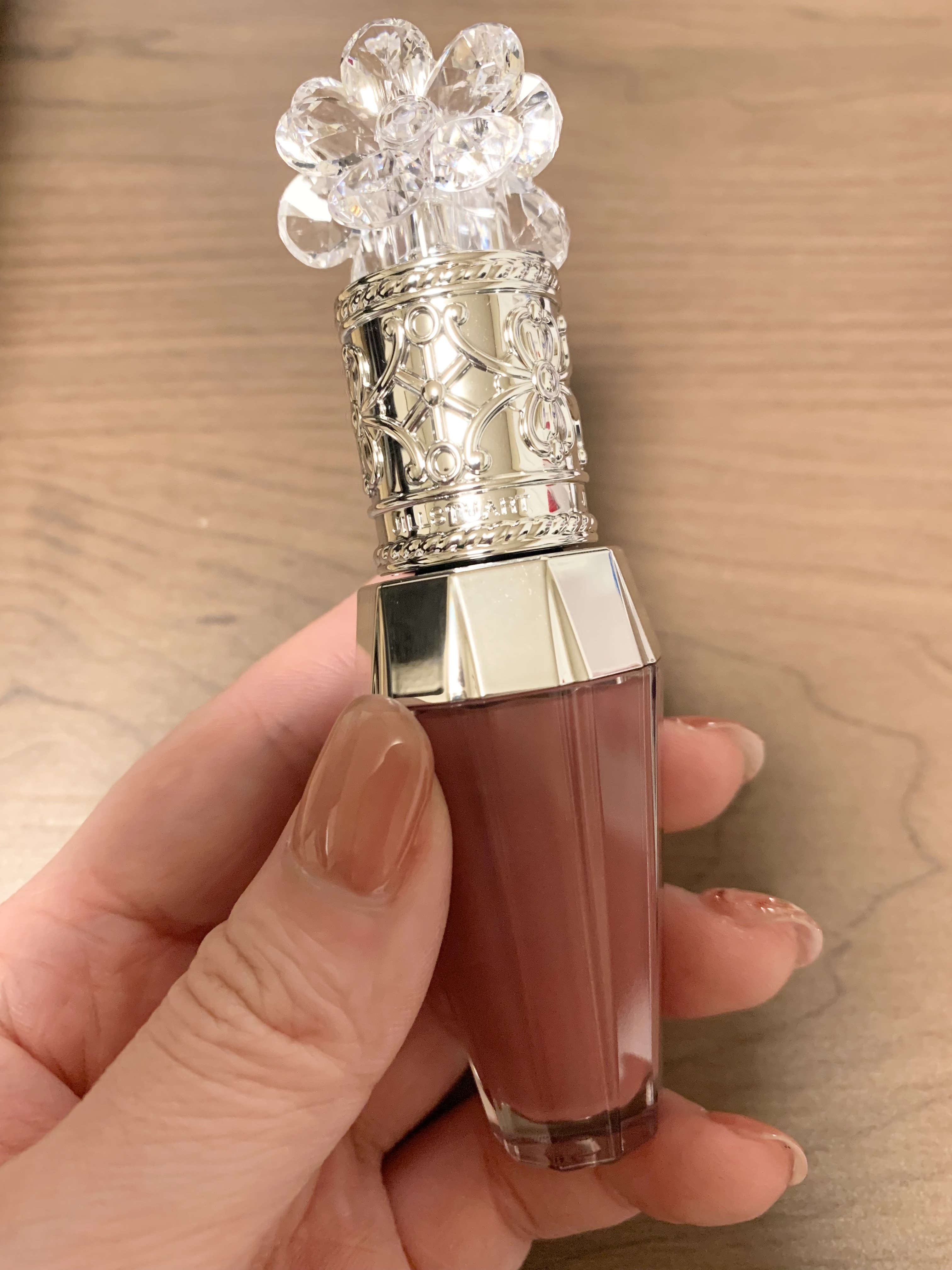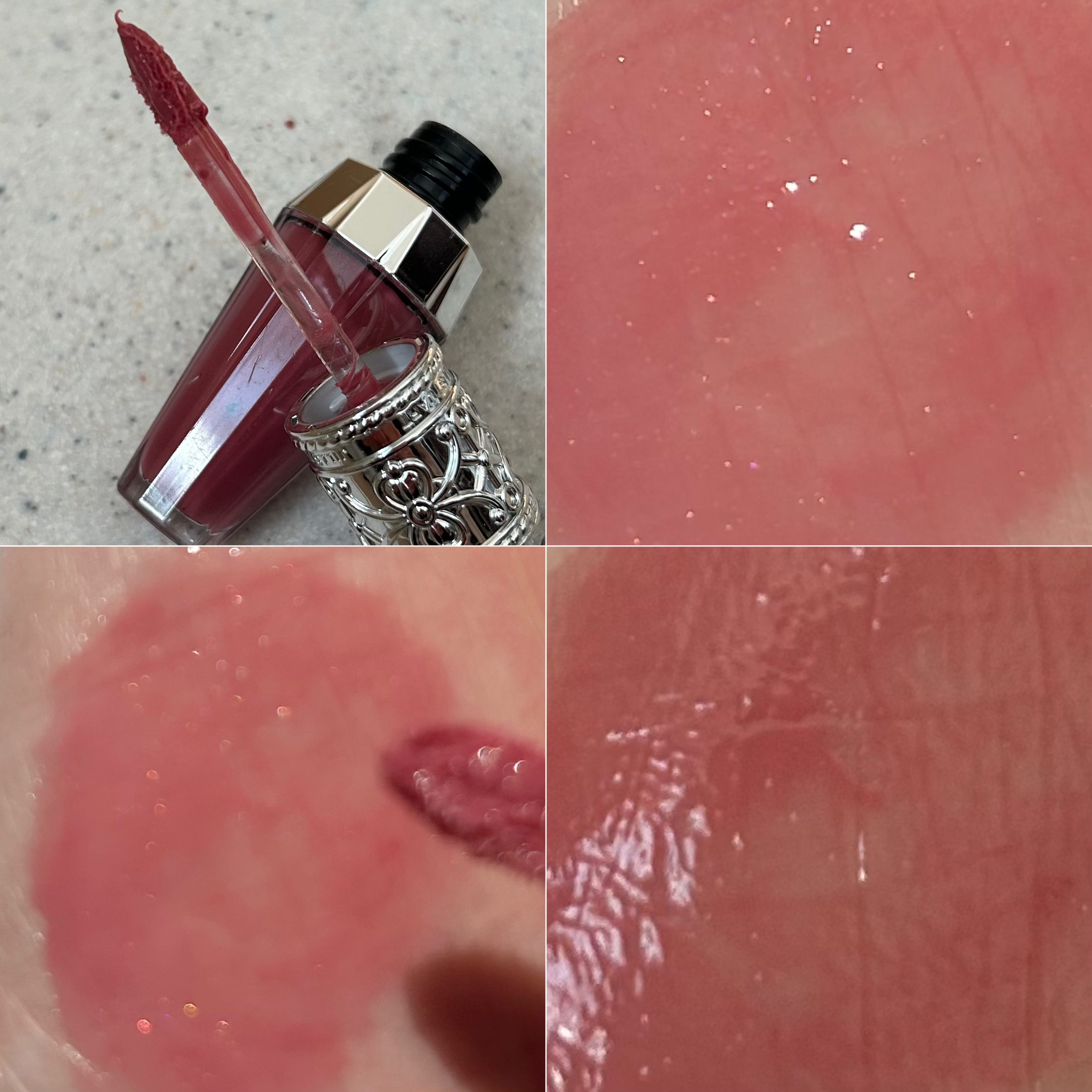 【色味】大人っぽいピンクベージュ 【色もち】意外と密着力あるが飲食すると落ちる 【質感】固めで塗布後スースー感あり 【保湿】高い保湿力 【良いところ】お姫様のような容器。香りもフローラル。プランパー効果がしっかりあり唇ふっくらする