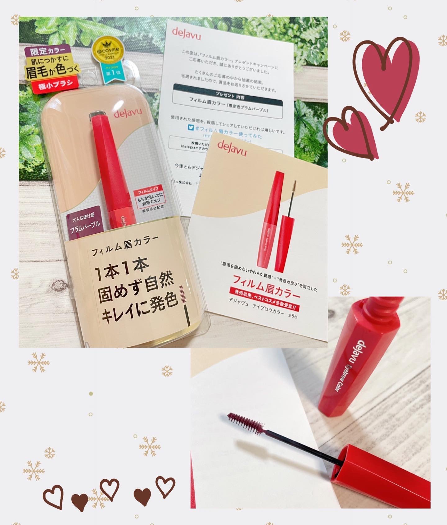 ブラシも超極細で使いやすい! 地肌につきにくく、急いでいても失敗しにくい。 しっかり発色して物足りなさも感じない。 やっぱり、アイブロウマスカラは デジャヴ一択だなあと感じます! ナチュラルブラウンも好きだけれど、 プラム系のメイクで統一したい時等 おしゃれ感が出やすいので好きです💜🥰