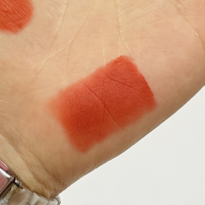 ブラウンが混じったローズピンクって感じのカラー。カラーの主張が強すぎず、落ち着いた色味なので、上品で落ち着いた雰囲気に🫧 自然な血色感がプラスされ、アイメイクの邪魔をしない無難なカラー😍 ぜひチェックしてみてね💫