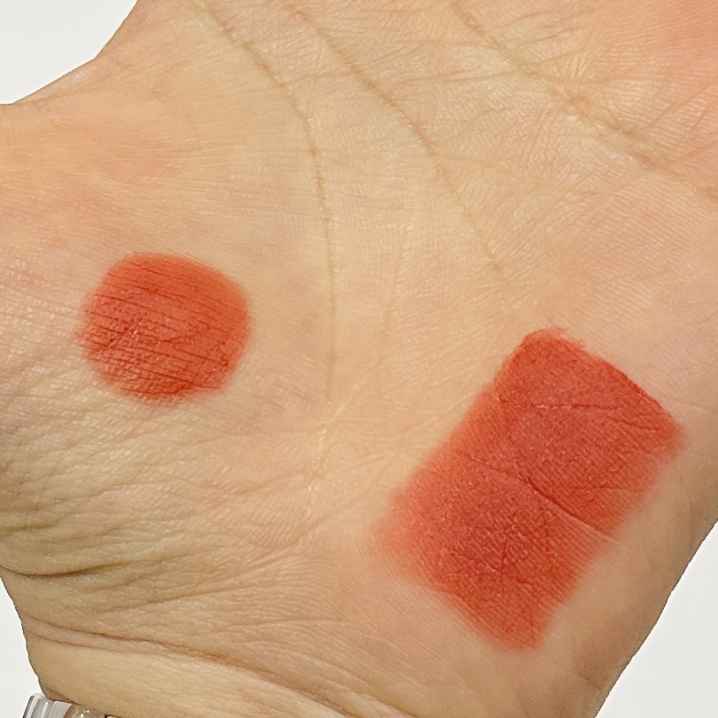 大人っぽく、上品に...落ち着いた雰囲気に仕上がるローズカラー2色を紹介❤️ ふわっとした泥のような質感でマットに仕上がる。 どんなアイメイクにも合わせやすいカラーで、肌馴染みも抜群🐰
