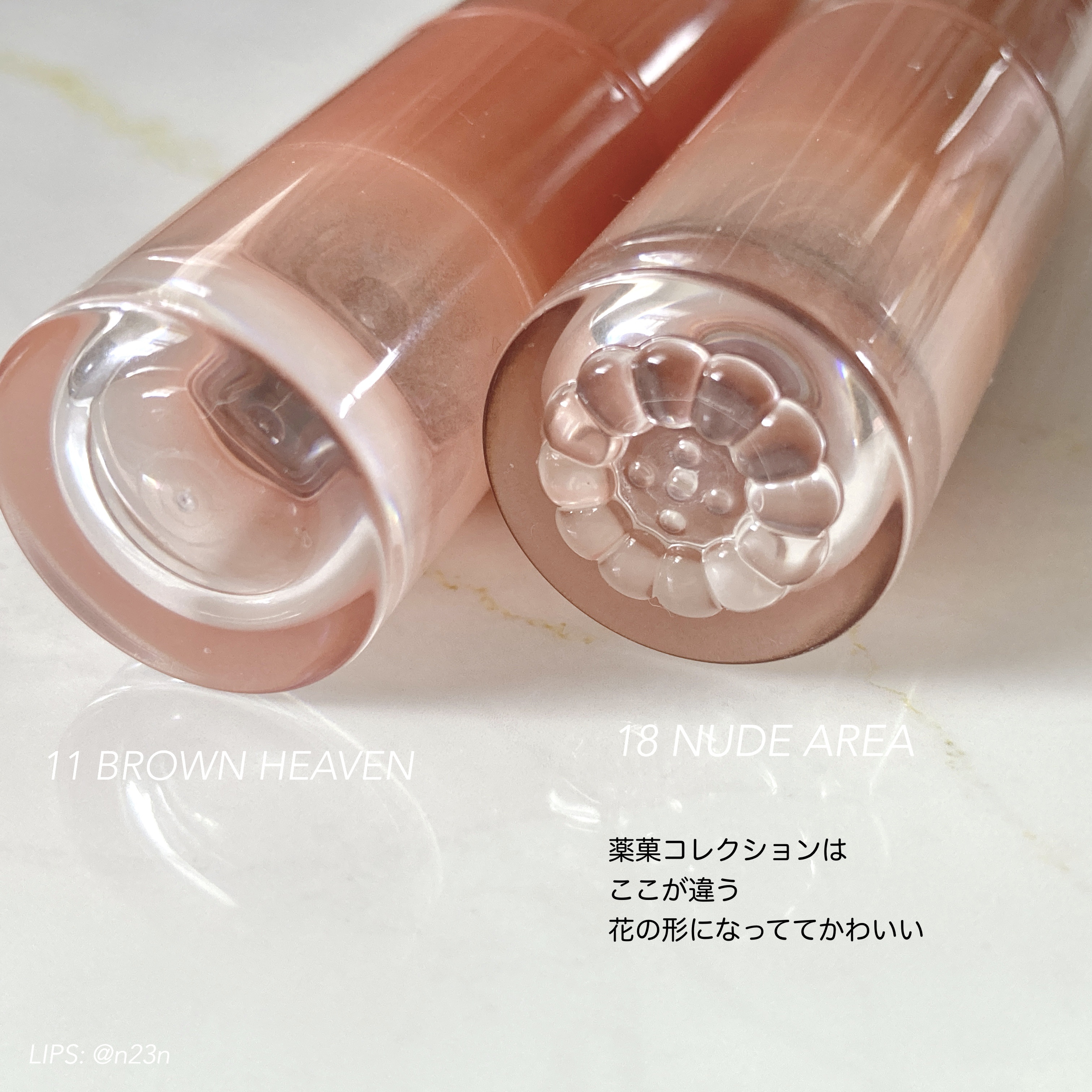 07I'MPINKESTと11BROWNHEAVEN追加した!!01と03すごく気に入ってヘビロテだったので追加で何色買うか悩んで悩んでこの2色。BROWNHEAVENは本当にクリアなブラウン。素の唇に血色ない人が使うとミルクティーっぽいブラ...