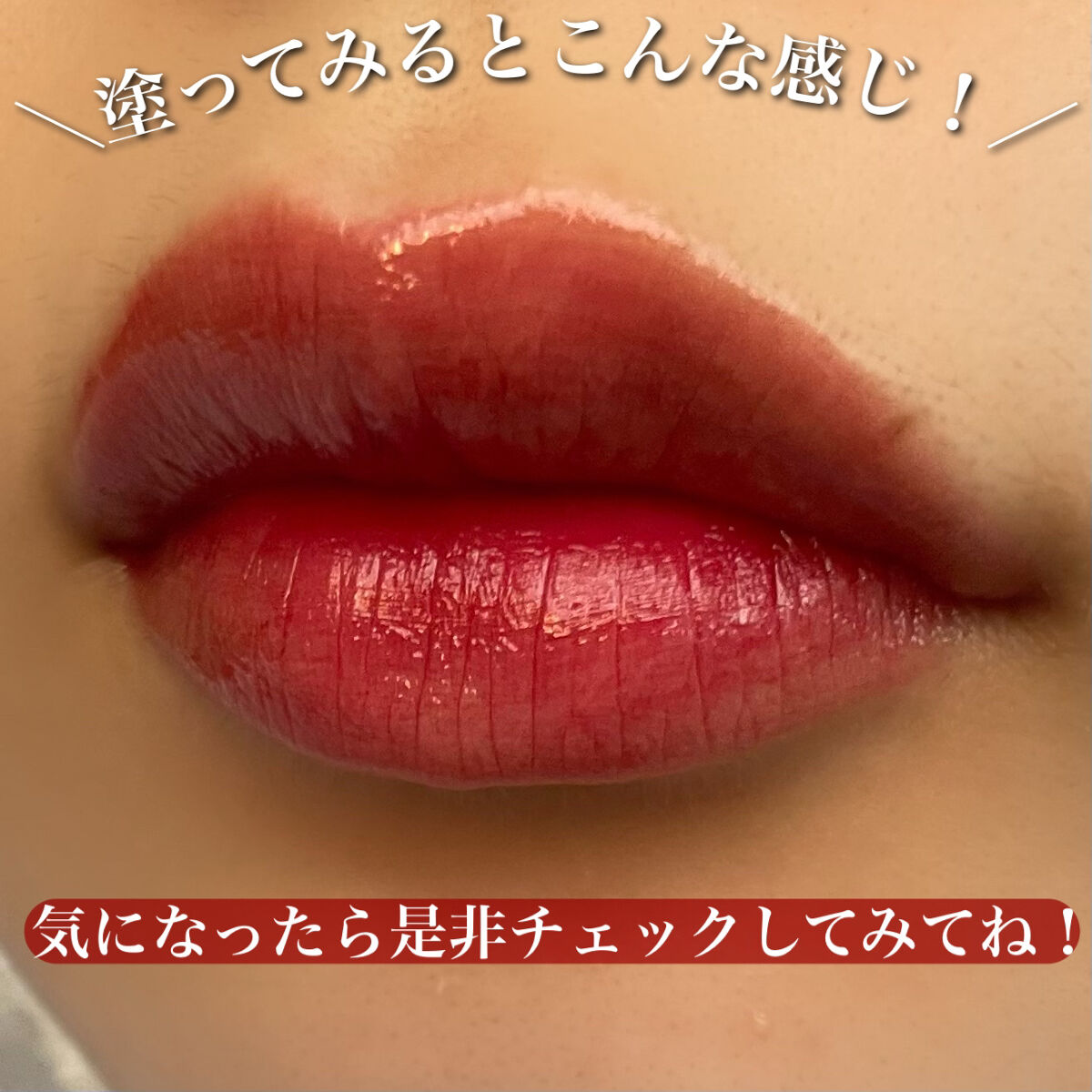 パパっと塗ってもムラなく仕上がるテク要らずのリップ。 唇の表面がなめはかで綺麗な仕上がりになります! 乾燥は気にならず、付けたてのツヤがずっと持続! 1番の特徴はクリアな発色! 付けたてもクリアですが、時間が経つにつれて透明感が爆上がり! 色味はクールやエレガント、カジュアルな雰囲気の色んなメイクに合いそう!