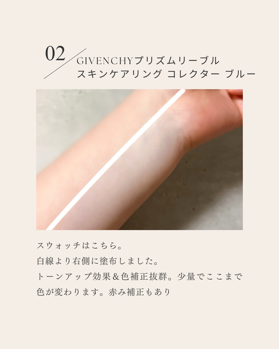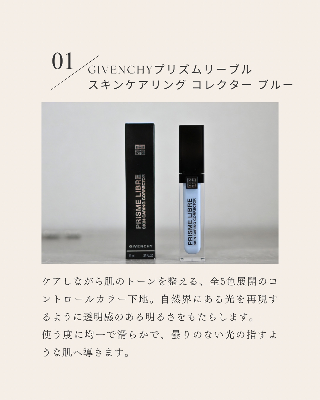 色を組み合わせて肌を仕上げる、ジバンシイの理念を象徴するコントロールカラー。 肌悩みを感じさせない均一な肌に仕上げ、一日中、補正効果が続いてくれるのだそう! 時間が経っても崩れにくく、個人的にはファンデ要らずのコントロールカラー。