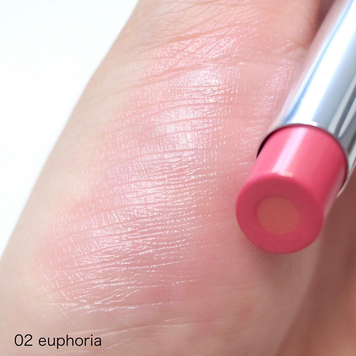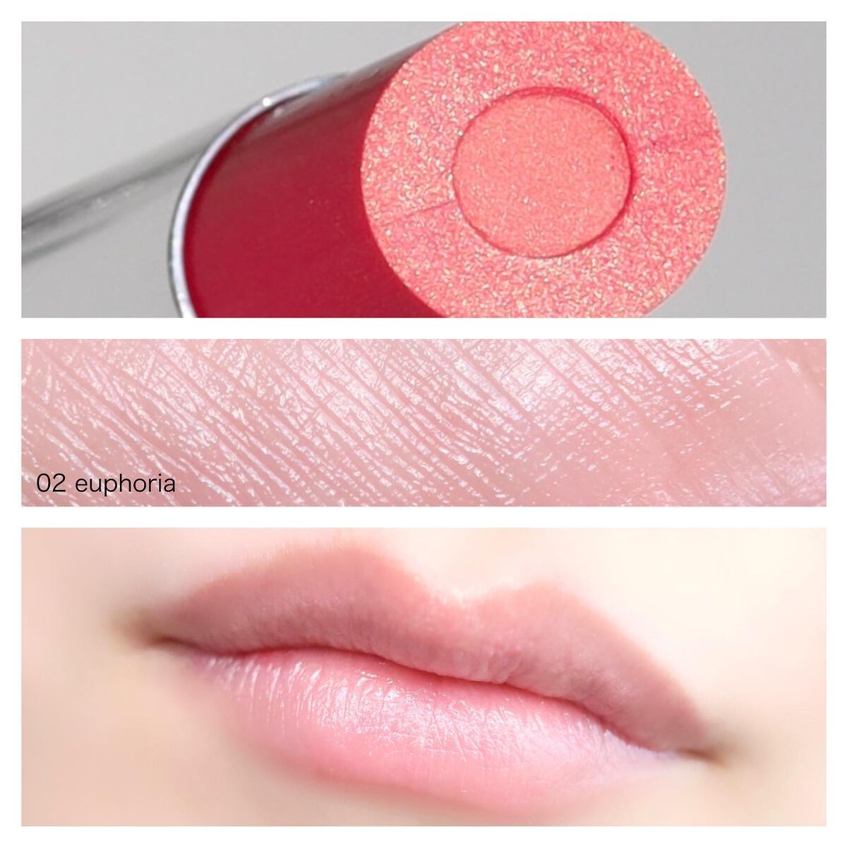 メインカラーとニュアンスカラーの2層になったトリートメント効果の高いシアータイプのリップセラム。 ちょっとだけ上品で、ちょっとだけ色っぽいカラー。 誰もが使いやすいレッドピンクです。 私の肌色的に似合わないだろうと思っていたら、付けたら凄く可愛かったやつ♡ 良い意味で裏切ってくれたピンクオレンジカラー。 塗ったら赤ちゃんみたいな唇になれる。 似合わないと思っていたユーフォリアの方が結果好きになってました。 天然由来成分をふんだんに使用したり、有害な成分が入ってないコスメを使いたい方にもおすすめの商品です。