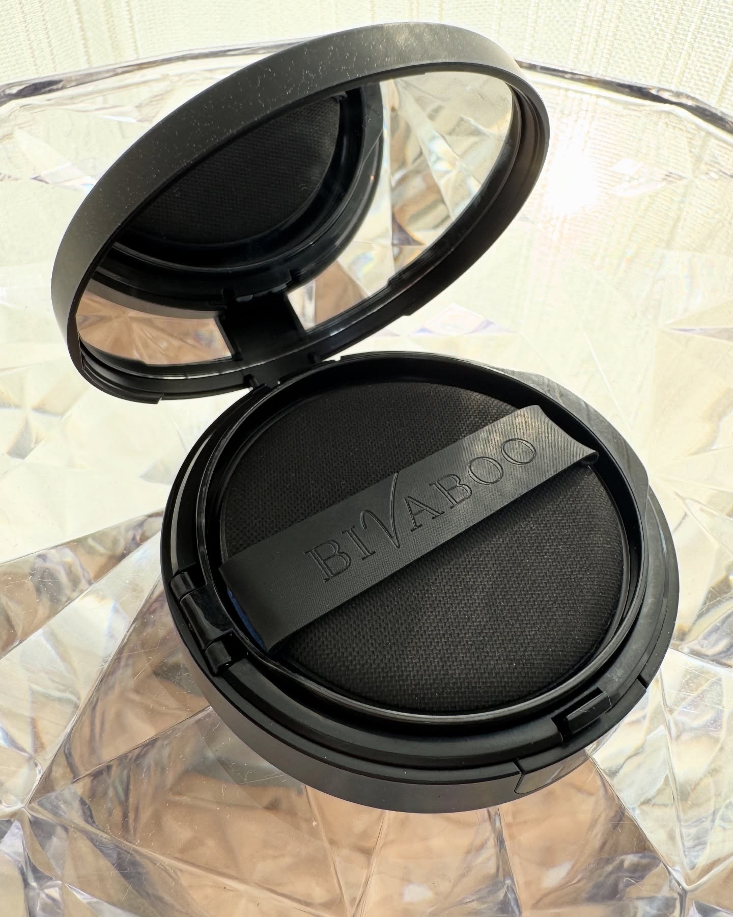BIVABOOベルベットジュエルクッションファンデーションを使ってみました!ブラックの高級感のあるパッケージデザインです!下地いらずでスキンケアの後にすぐ使える手軽さです。忙しい朝でも、これ一つでベースメイクが仕上がるため、時短したい日に重宝...