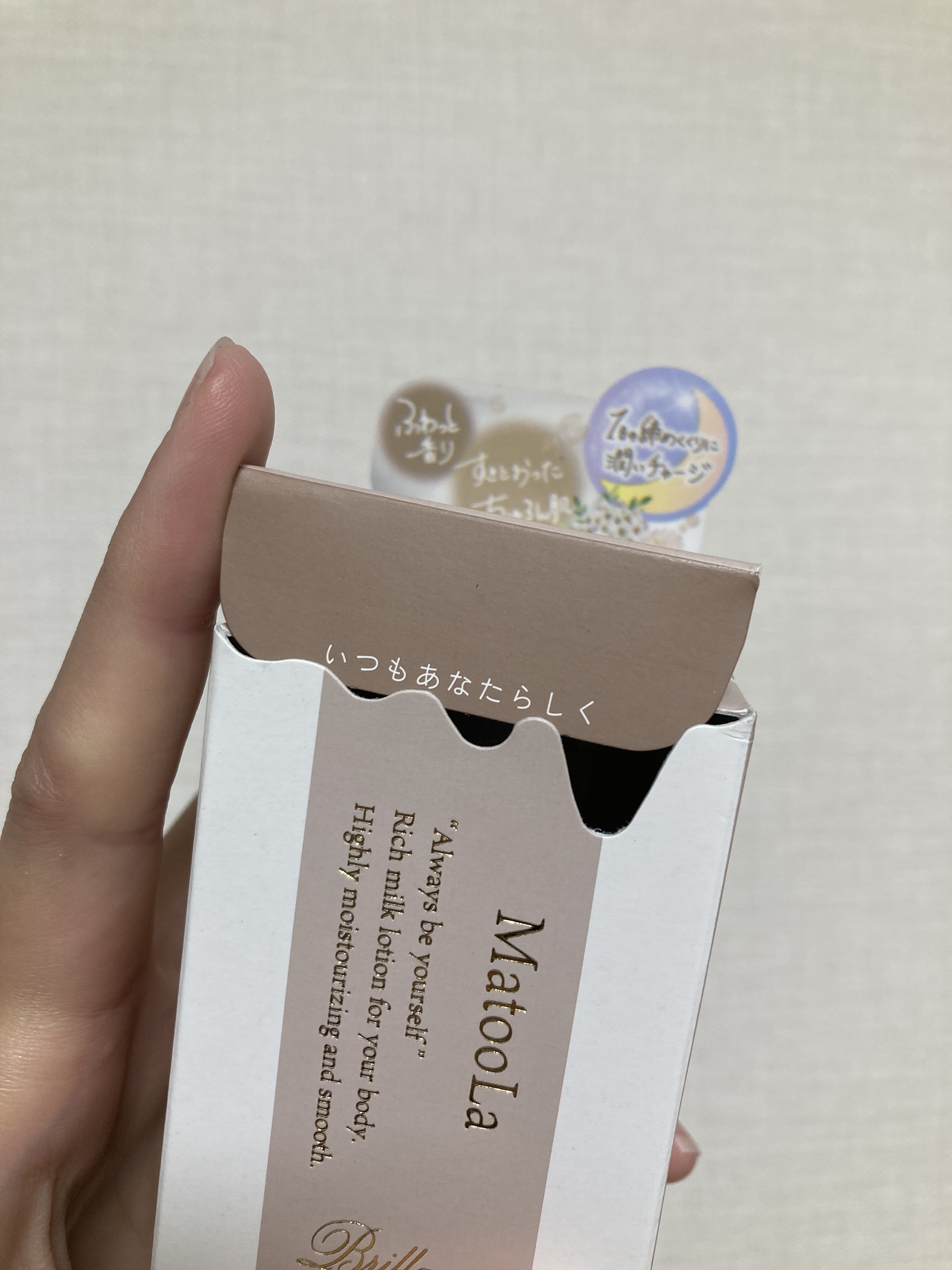 MatooLaボディミルクブリランテ/フローラルムスクの香り 150mlリップスショッピングでボディミルクを探していて、パケが可愛かったので購入!w外箱の密かなデザイン「いつもあなたらしく」がいいですね!本体はラベルが布地!珍しい!牛乳びん?みたいで可愛い!香りはムスク強すぎずいいです!!気に入りました♩